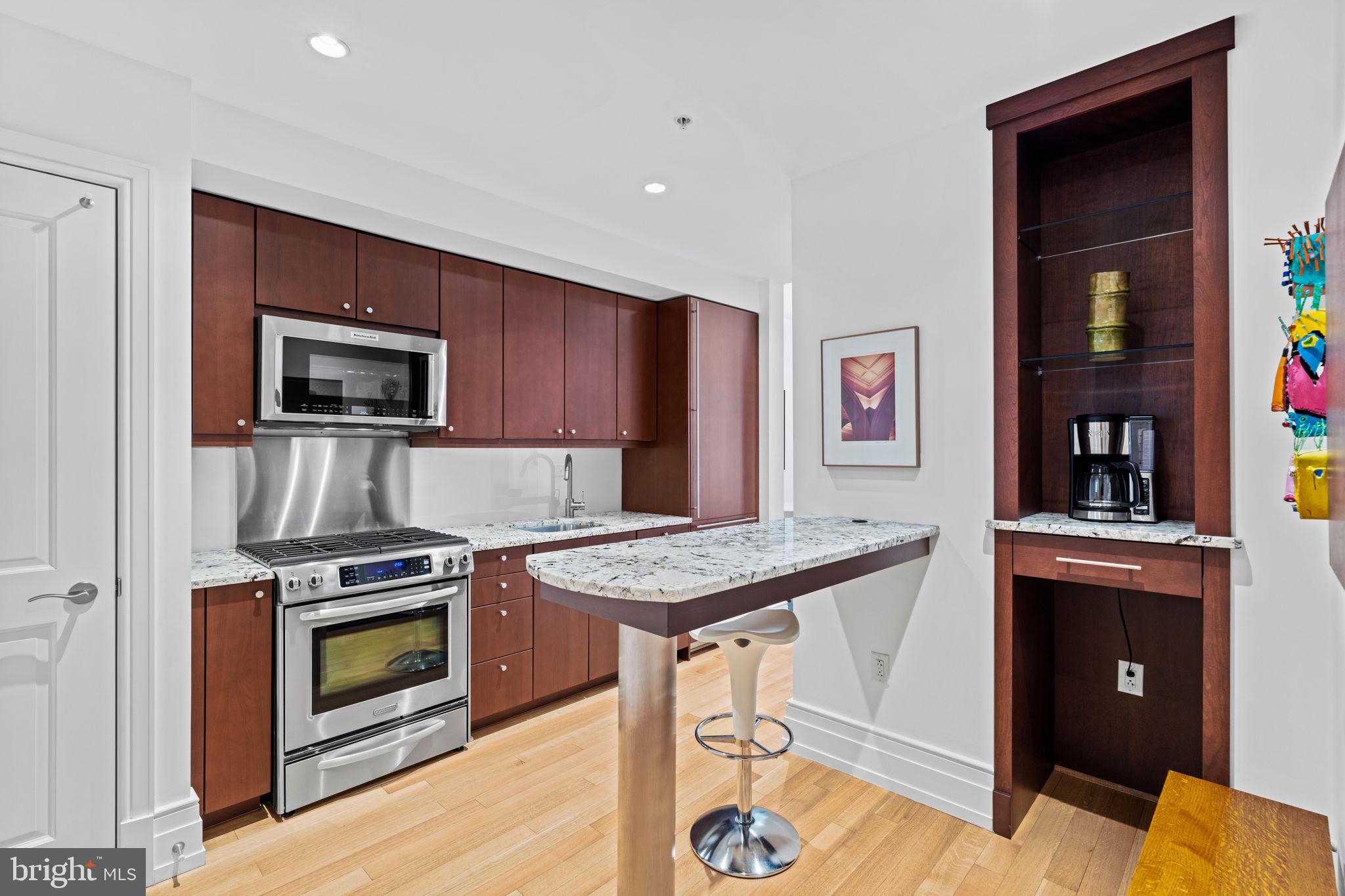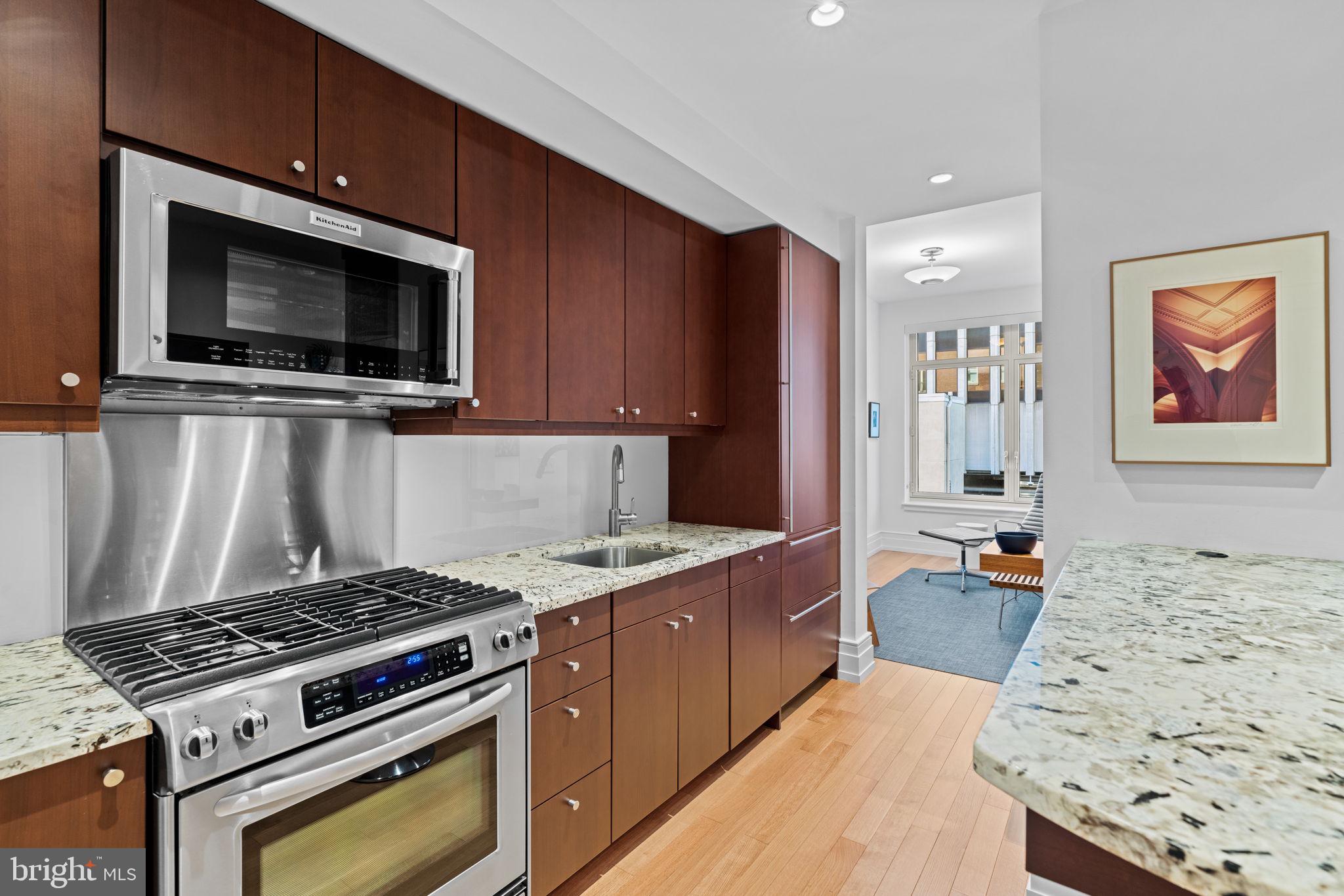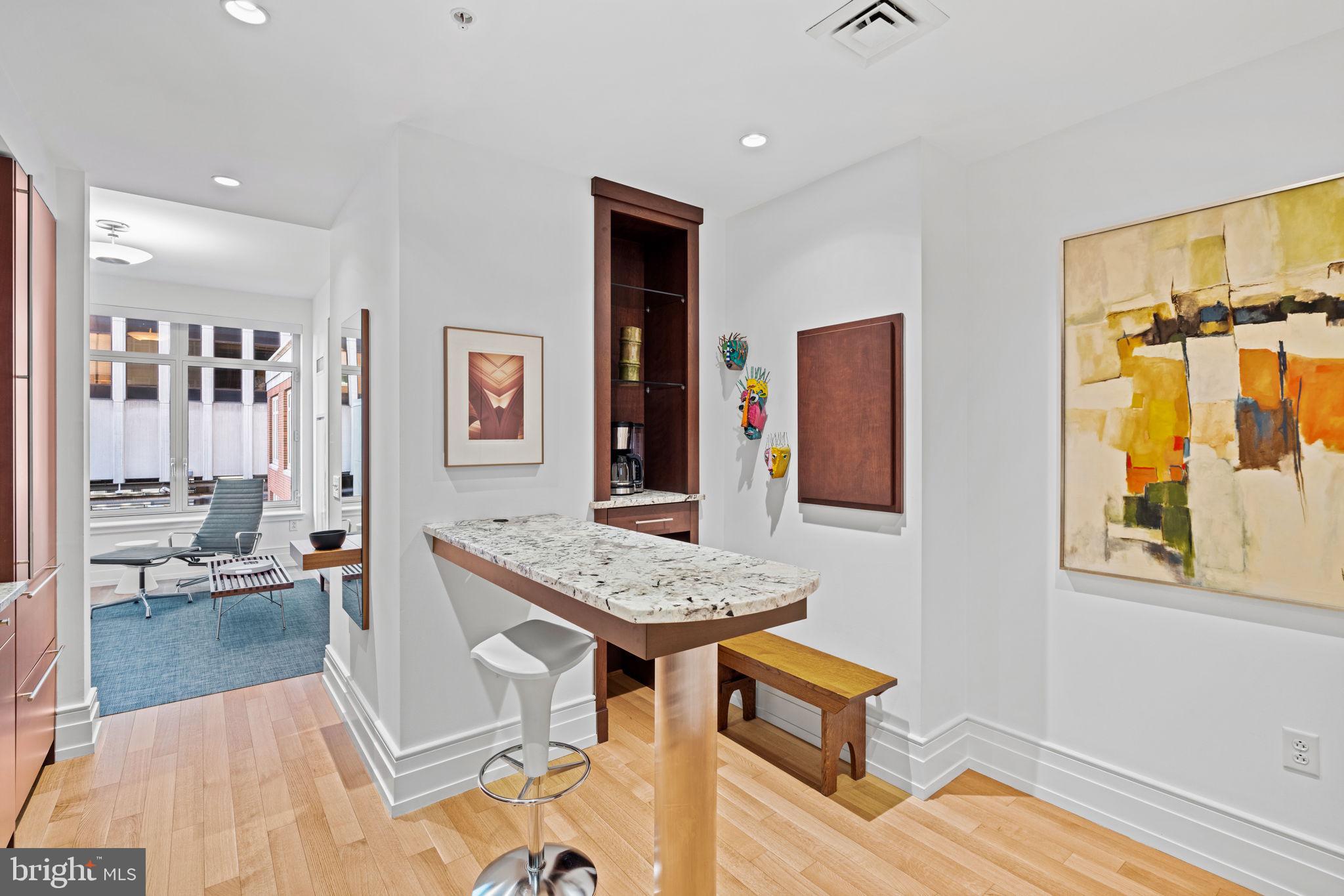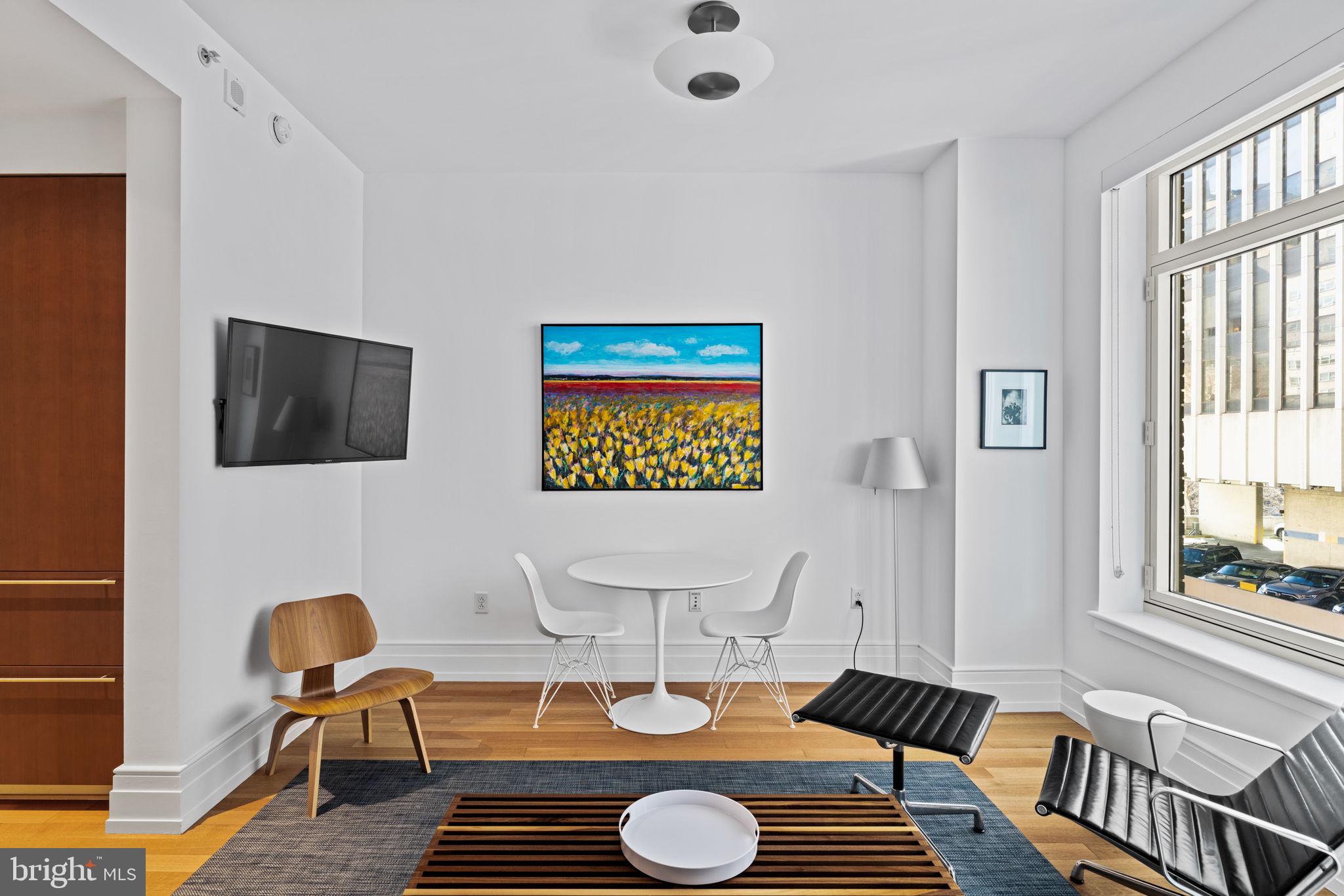 Welcome to 10 Rittenhouse Square Condominium designed by the renowned Robert A. Stern. Discover five star living in this exceptionally spacious luxury studio. The exquisite residence boasts a thoughtfully designed open layout and custom built-ins that maximize space and functionality. The oversized windows are a standout feature, allowing for streaming natural light to flow throughout the interior. Located off your main living space, is a well-appointed eat-in kitchen with high-end appliances and beautiful Poggenphol European cabinetry. Upgrades of the kitchen include a center island, wine fridge, and a custom built-in breakfast area. The bedroom suite is complete with beautiful custom built-in closets, drawers and shelving, plus a large closet. Adjacent to the bedroom is a great ensuite bathroom with a shower/tub combination. There is a full-size Miele washer and dryer in a separate laundry closet outfitted with additional storage/shelving. One of the unique aspects of this condo is its views overlooking a beautifully maintained courtyard. Signature amenities include a chauffeur driven town car at your service, state-of the-art fitness/strength training center, saline pool, yoga studio, board room, party room with a catering kitchen, wine storage, bicycle storage, courtyard and garden terrace, guest suite for overnight guests and an array of services for residents. The world-famous Rescue Spa is located on the first floor of the building, in addition to where the best restaurants and shopping in town are at your finger tips!! Storage included. Minimum 24 month lease is a building requirement - no exceptions.