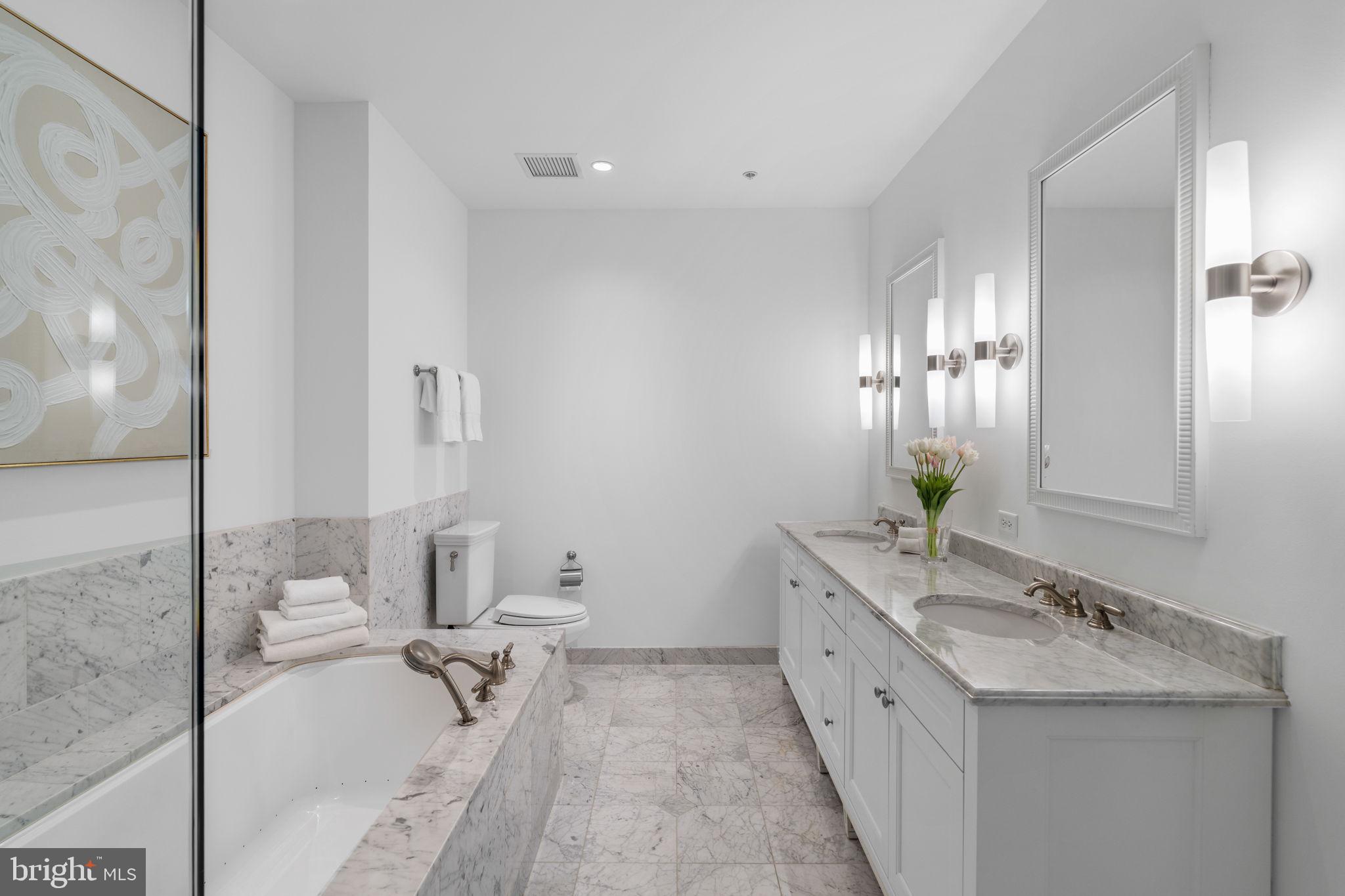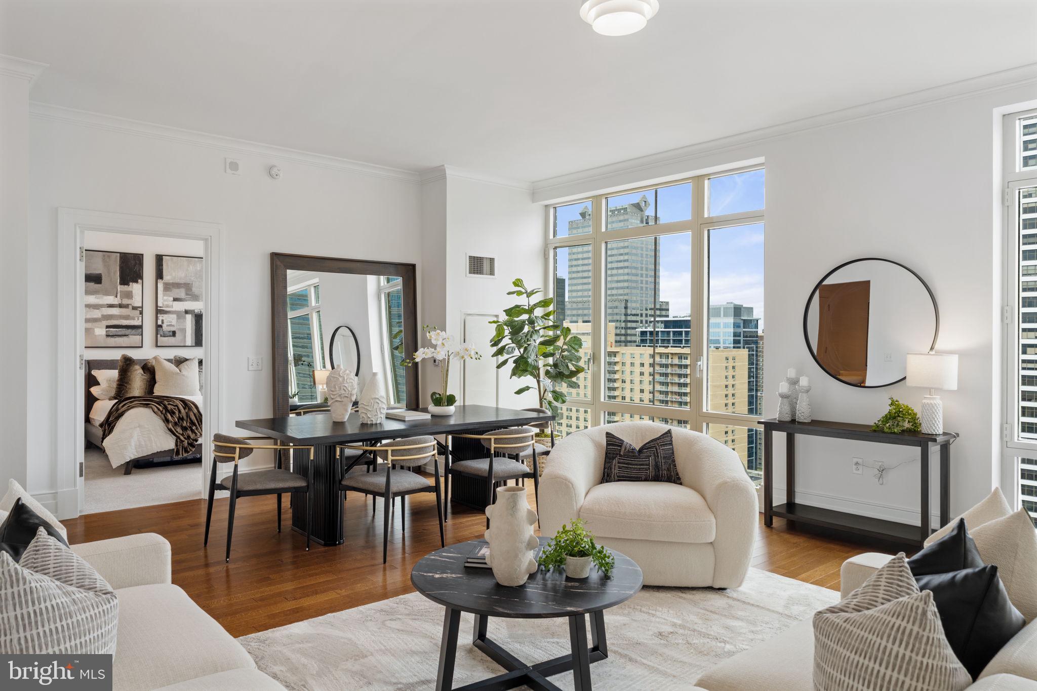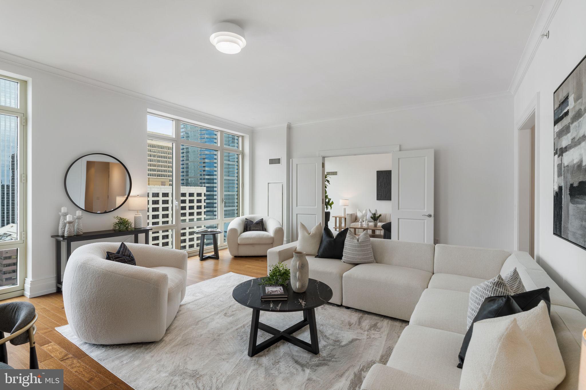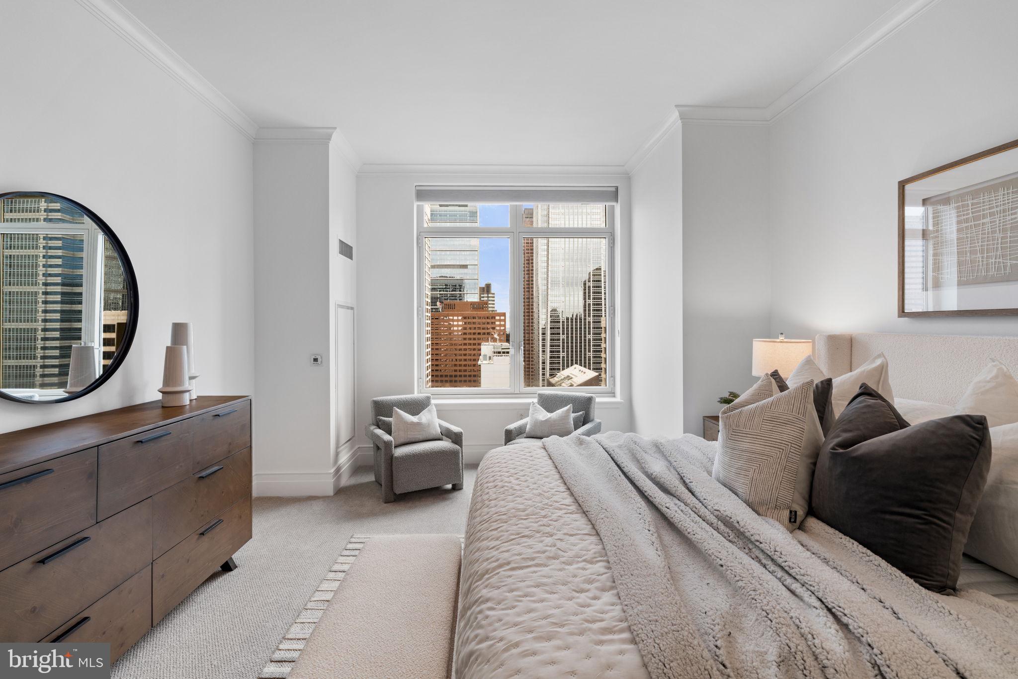 Experience 10 | Live at 10. Welcome to residence 2502, a high floor 3 bed 3.5 bath designer condo with knockout skyline views. This versatile split bedroom design offers the perfect flow and lifestyle. A large eat-in chef's kitchen balances practicality with sophistication and features white Poggenpohl cabinetry, an informal dining option, an oversized island, Subzero, Wolf and Miele appliances. Drift into the grand living space measuring over 25 feet wide with floor to ceiling windows. A flexible space with tremendous scale where you can have dinner parties or relax with your loved ones on a huge sectional. Enjoy your art collection displayed on expansive walls. Off of the main living room through beautiful shaker french doors you'll find a 3rd bedroom (currently used as a den / office ) with an en-suite marble bathroom. On the west end of the condo you'll find a lovely guest bedroom with two closets and an en-suite as well. This guest bedroom can function as a work from home space if preferred. A hallway separates the entertaining areas from the private sanctuary of the primary suite which features dramatic views, a pristine spa-like 5 piece marble bathroom and a large walk-in closet. The next owner will also enjoy a brand new paint job (all walls, trim, ceilings) and brand new wall to wall carpet in all bedrooms (3). 2502 has over 60 feet of skyline frontage and this floor has higher ceilings than almost any other in the building. A true 3 bedroom condo with plenty of versatility... an incredibly efficient layout and use of square footage. Robert A.M. Stern, the famed architect responsible for iconic buildings such as 520 Park Avenue, 220 Central Park South and 15 Central Park West designed a masterful building on our beloved Philadelphia park. Residents enjoy 5 star 24 hour service, a chauffeured driven town car, yoga room, a brand new gym, new sauna, new steam, indoor lap pool, library, outdoor courtyard, board meeting room, piano lounge, TV lounge, climate controlled wine room, bike storage, catering kitchen, hotel guest suite, underground valet parking and most importantly a friendly and beautiful community. Philadelphia's TOP SPA, Rescue Spa has opened in the building for the ultimate convenient amenity along with Philadelphia hottest restaurant opening Borromini. Pet friendly. ****** Located on prime 18th street where the best restaurants in town are at your finger tips. Pet friendly. One Storage unit included with this sale as well as One Parking License.