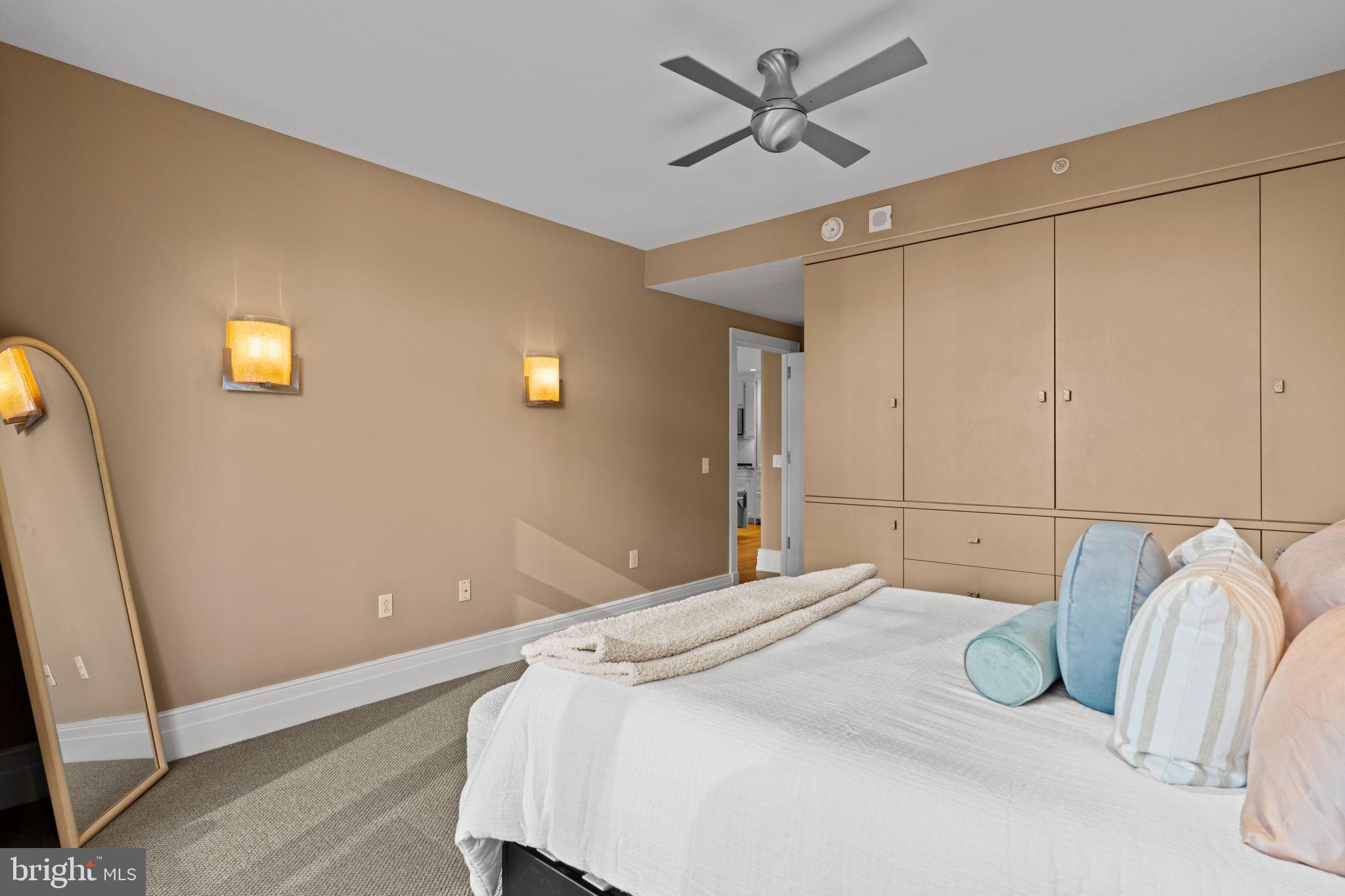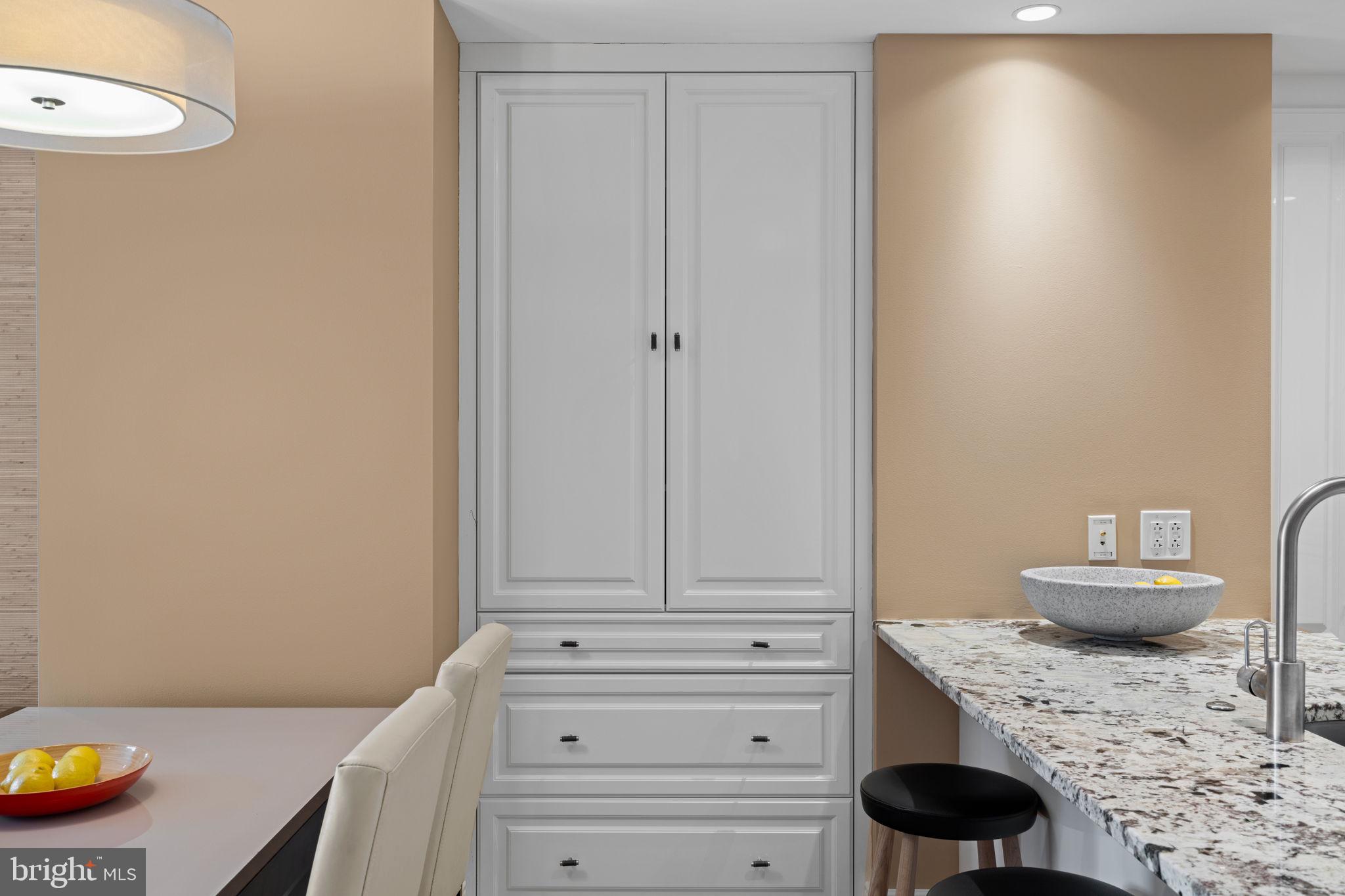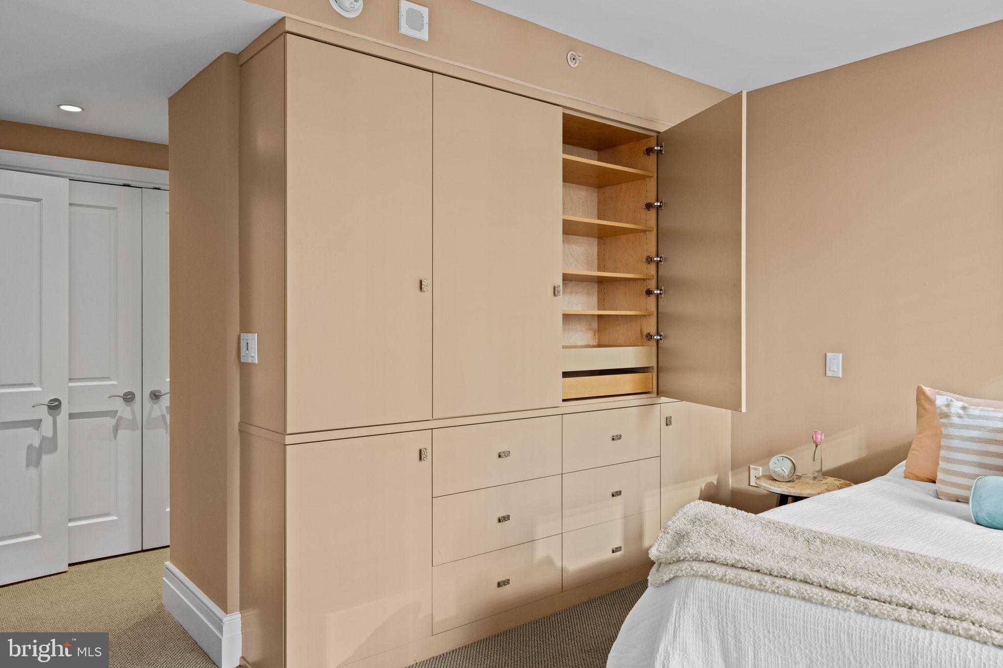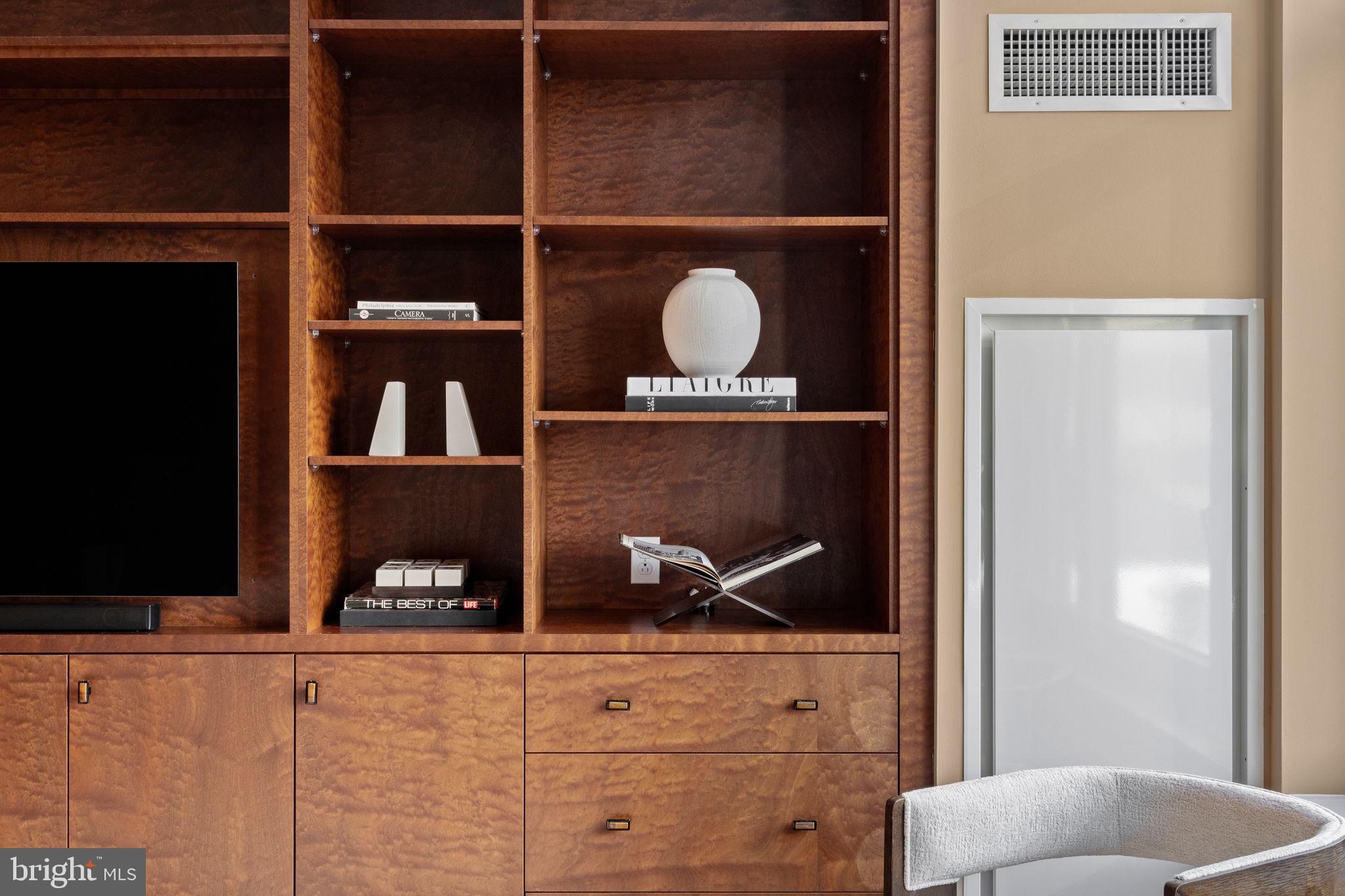 Residence 503, a spacious deluxe one bedroom one and a half bath condo. Well positioned on the North side of the building with skyline views from both the living room and bedroom. Very nice scale and proportions throughout. A large eat in kitchen features high-gloss white Poggenpohl cabinets, barstool seating, a paneled Miele dishwasher, a paneled SubZero Refrigerator, gas cooking and tons of pantry storage plus surface/prep area. A dining area sits 4 easily. The large living room provides many possible seating arrangements. The spacious bedroom features skyline views while lying down in bed, space for a desk or chaise, three closets and a grey marble 4-piece bathroom rarely found at this price point. Beautiful improvements include bespoke living room and bedroom built-ins, matching cabinets in the dining room nook and recessed lights throughout. What makes this unit a one bedroom standard within the building? The layout allows for a separate dining area, guests can use the powder room vs walking through the bedroom and there is no wasted square footage. Robert A.M. Stern, the famed architect responsible for iconic buildings such as 520 Park Avenue, 220 Central Park South and 15 Central Park West designed a masterful building on our beloved Philadelphia park. Residents enjoy 5 star 24 hour service, a chauffeured driven town car, yoga room, gym, indoor lap pool, library, outdoor courtyard, board meeting room, piano lounge, TV lounge, climate controlled wine room, bike storage, catering kitchen, hotel guest suite, underground valet parking and most importantly a friendly and beautiful community. Philadelphia's TOP SPA, Rescue Spa has opened in the building for the ultimate convenient amenity! Located on prime 18th street where the best restaurants in town are at your finger tips. Pet friendly. Parking can be rented in the building but subject to availability. 1 large storage unit comes with the condo.
