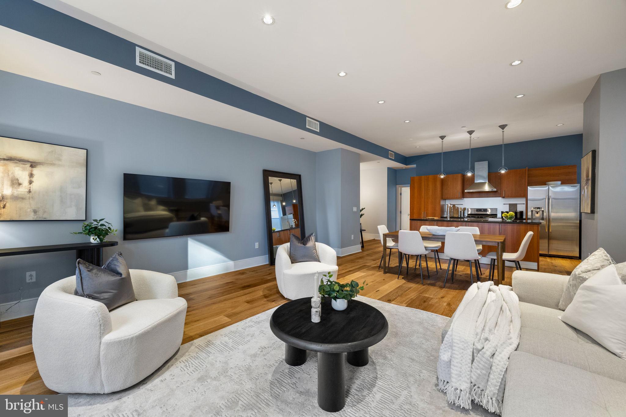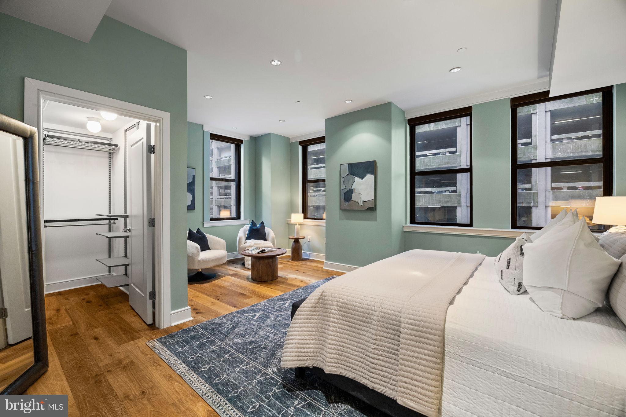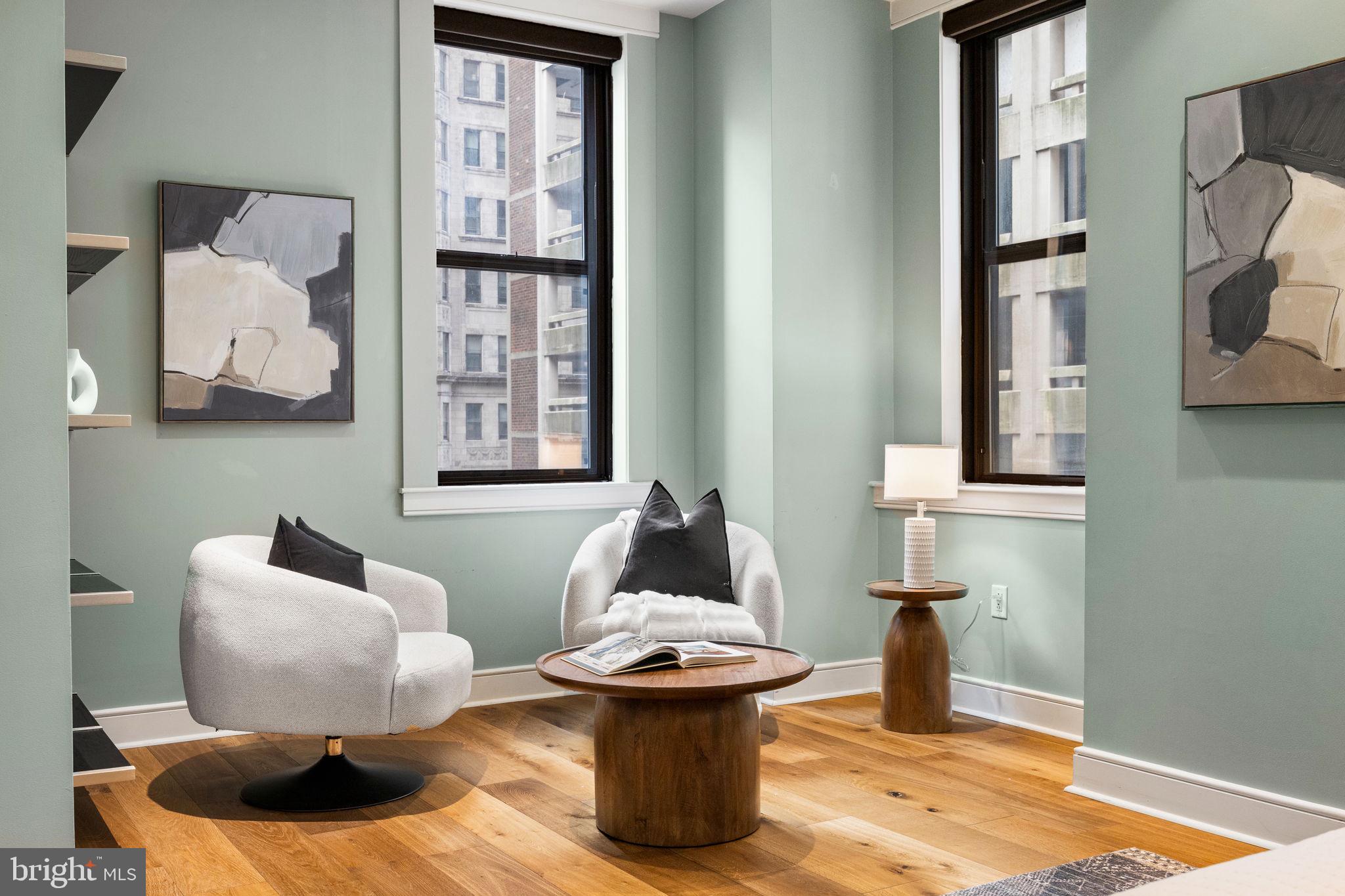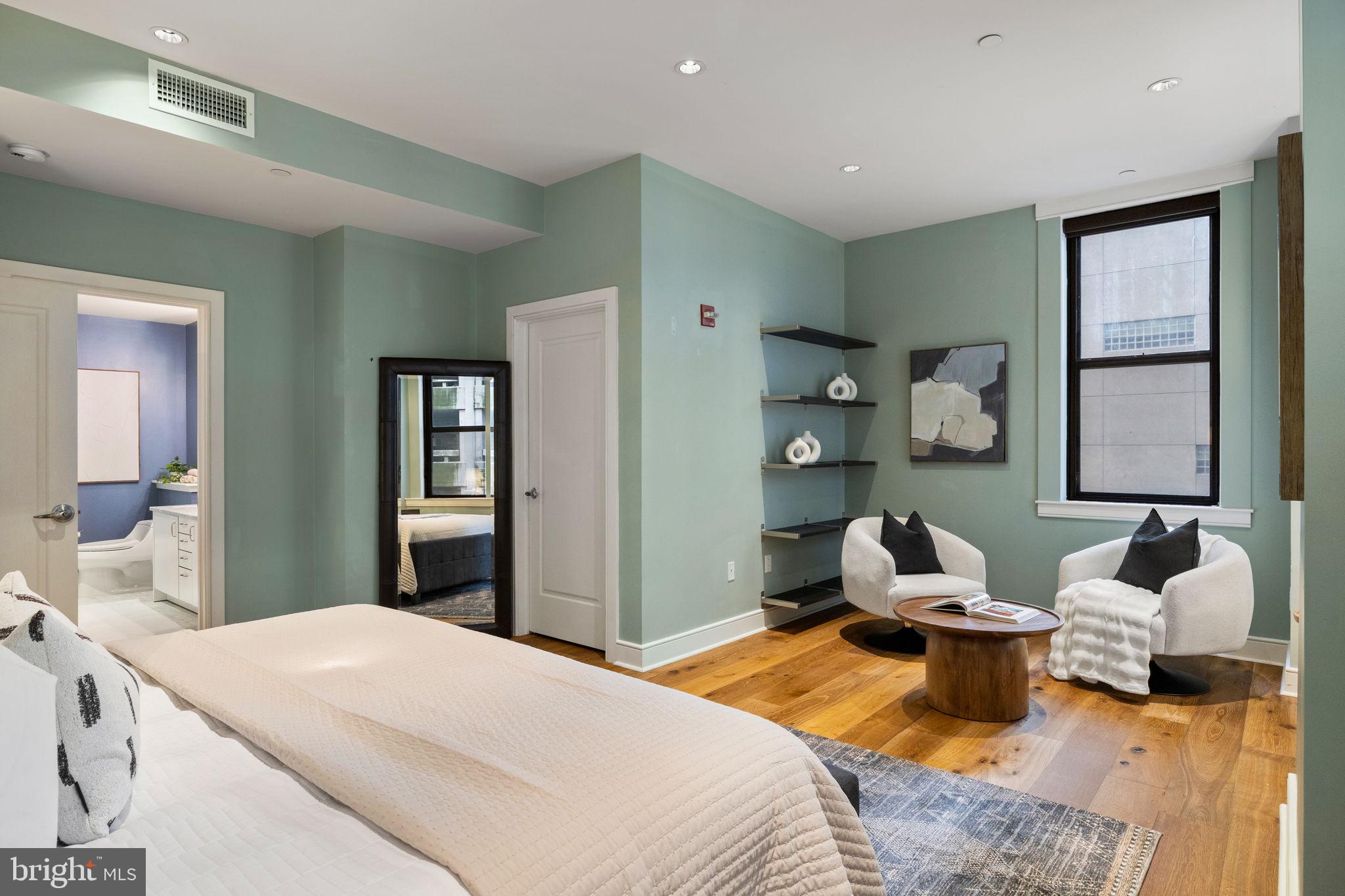 NEW LISTING! Welcome to The Chelsea, Residence 401, a beautifully upgraded corner unit offering three Exposures (North, West and South), soaring ceilings, and oversized windows that floods the interior with streaming natural light. This expansive two bedroom, two-and-a-half-bathroom condo offers 1,855 square feet of modern urban living in one of Philadelphia's most coveted neighborhoods, just steps from Rittenhouse Square. The open concept living, dining and kitchen area creates an airy atmosphere, perfect for both entertaining and everyday relaxation. Gorgeous newer wide plank white oak flooring throughout. Well-appointed and timeless chef's kitchen, complete with high end appliances, a large center island, and ample pantry space. The corner primary bedroom suite is tremendously spacious with an office/sitting nook, a large custom walk-in closet and a luxurious 5 -piece en-suite bath with double marble vanity, frameless newer marble shower, and marble bathtub. Located on the opposite wing of the home, is a second bedroom with its own en-suite bathroom and a walk-in closet. The entry hall offers a half bath, laundry closet, and a coat closet. With only two residences per floor, the boutique, pet-friendly Chelsea Condominium has a secure lobby entrance. This residence offers one of Center City's most convenient locations. Walk to everything--all the amazing eateries and shopping of Rittenhouse Row, two block walk to Rittenhouse Square, close to Midtown Village, and central to everything that Center City Philly has to offer. Plentiful monthly garage parking options within one block.