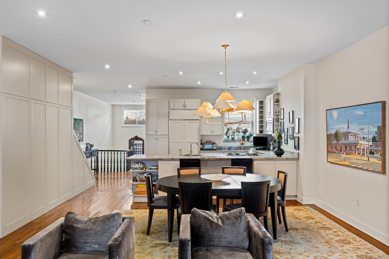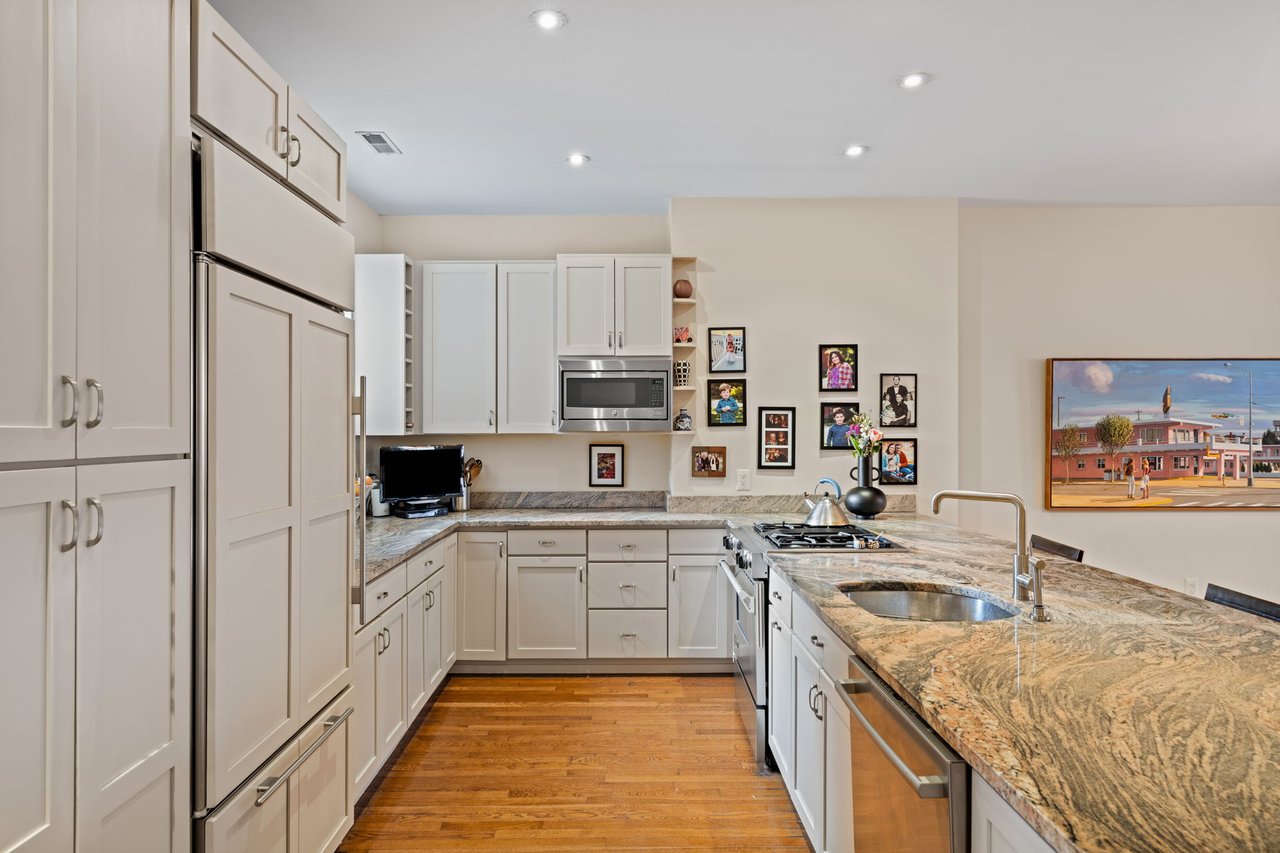 Rarely found in the city, this home delivers extraordinary volume and openness. Impeccable proportions create an airy, light-filled environment that feels both grand and inviting. The main level unfolds into a sweeping open-concept living, dining, and kitchen space designed for effortless entertaining and elevated everyday living. Old-world architectural details — crown molding, beautiful hardwood floors, and a fireplace — are thoughtfully paired with modern updates for a seamless blend of character and comfort.