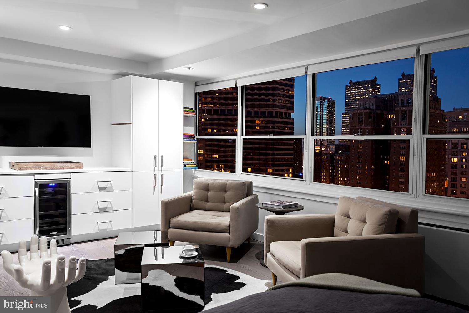 Beautifully renovated studio overlooking Rittenhouse Square. All utilities included in this price except for cable and internet. Featured on Zillow for cool tiny homes. Bring a bed and a sofa and move right in. TV included. All built-ins included. Bo-Concept bed with storage you see in photos included. Laundry in unit. Fill size refrigerator. Window treatments. Tons of storage. Skyline views are incredible. Brand new roof top! Lives like an extended stay hotel. Available now. $93 flat cable and internet fee charged to tenant on top of the rent price. no other utility bills!