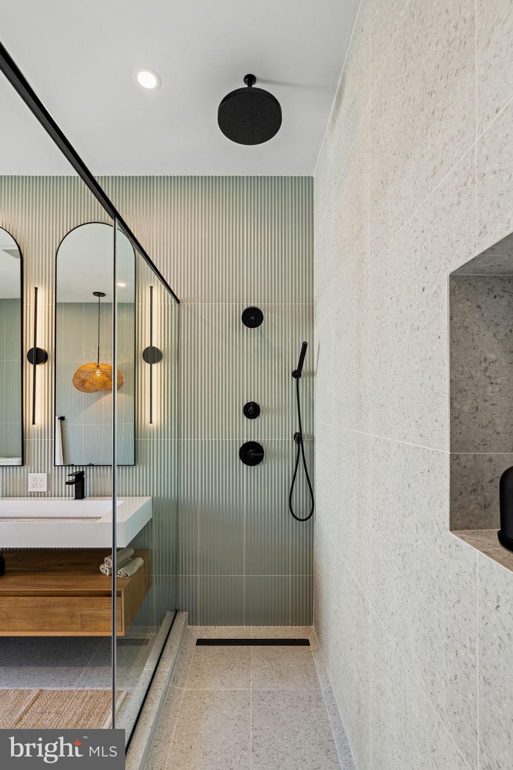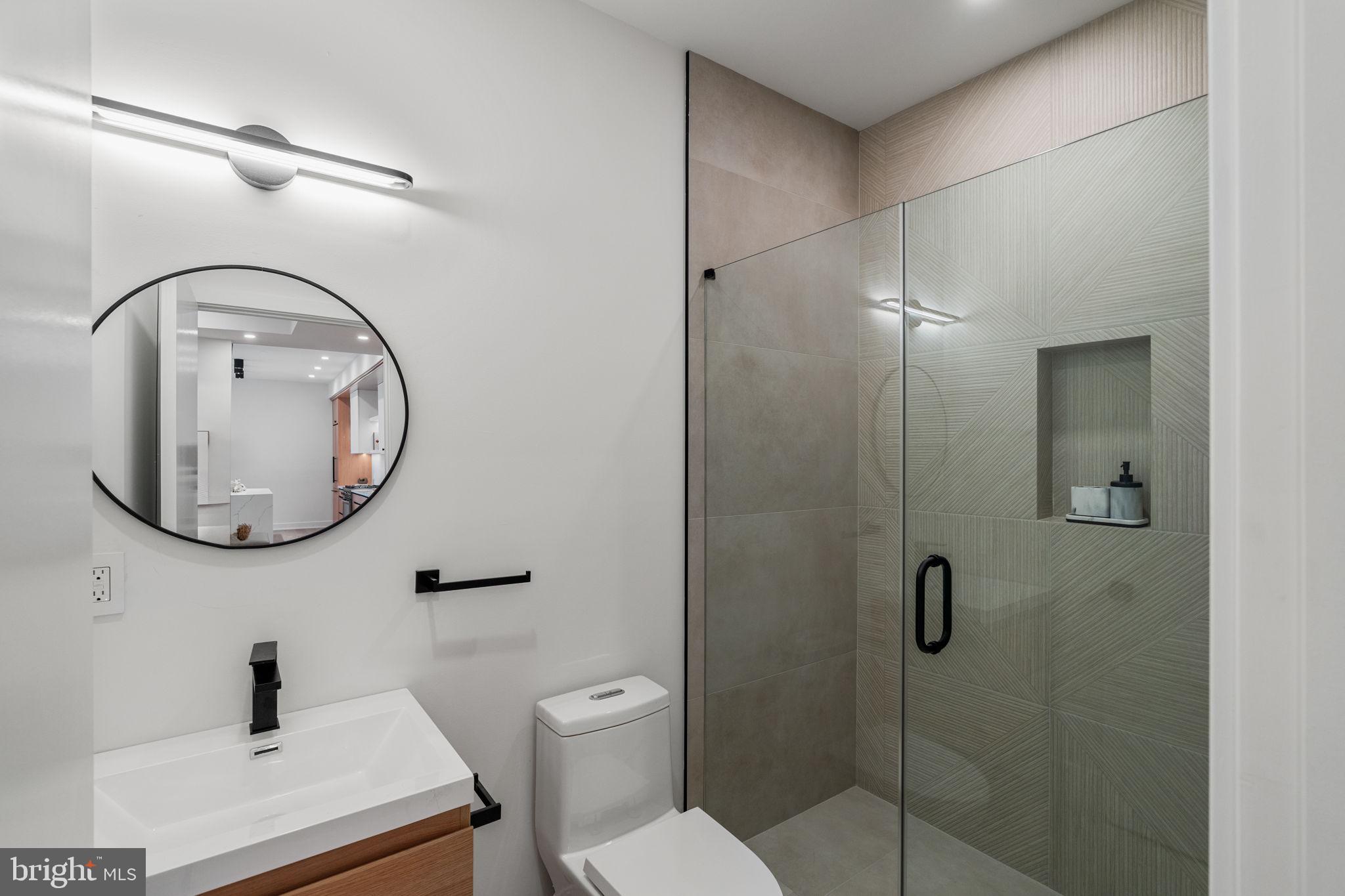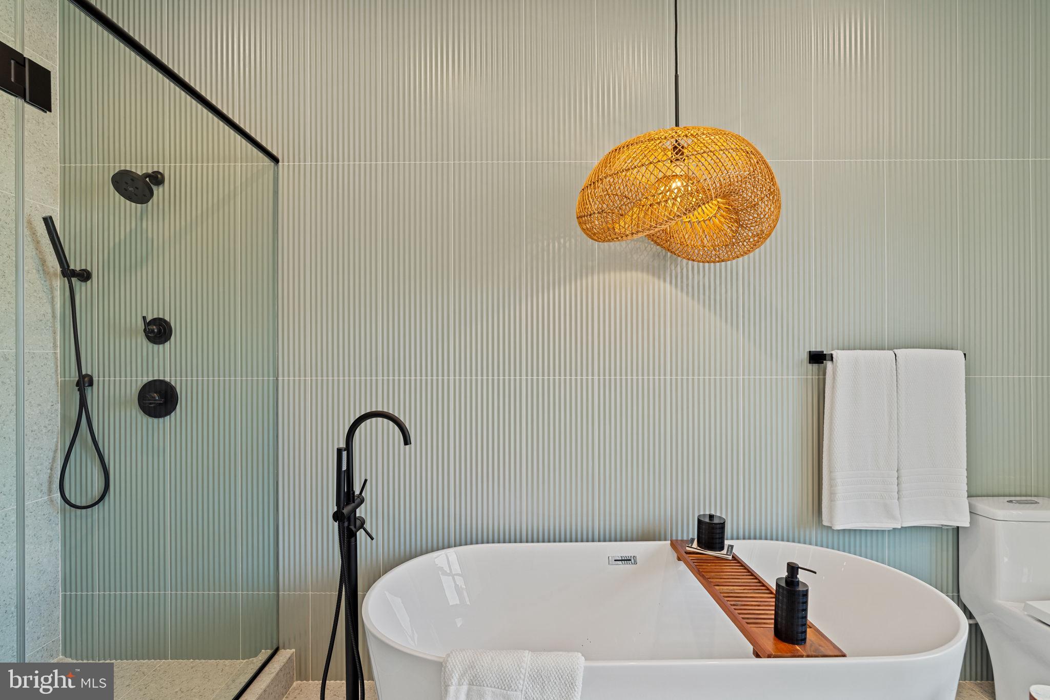 Third Floor The entire top floor is dedicated to the primary suite, a private sanctuary above the city. Here, soaring ceilings and natural light create an airy retreat. The spa-inspired ensuite features a bespoke glass-enclosed two-person shower, large fluted tiled walls, and a sculptural freestanding tub, blending luxury and tranquility. Custom walk-in closets provide exceptional storage, while direct access to a private terrace offers an intimate outdoor escape for morning coffee or evening relaxation.
