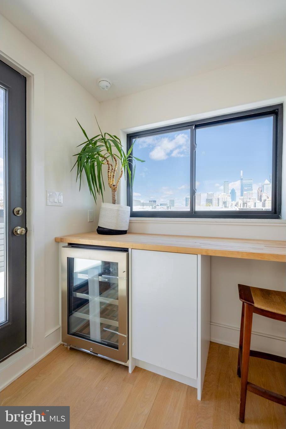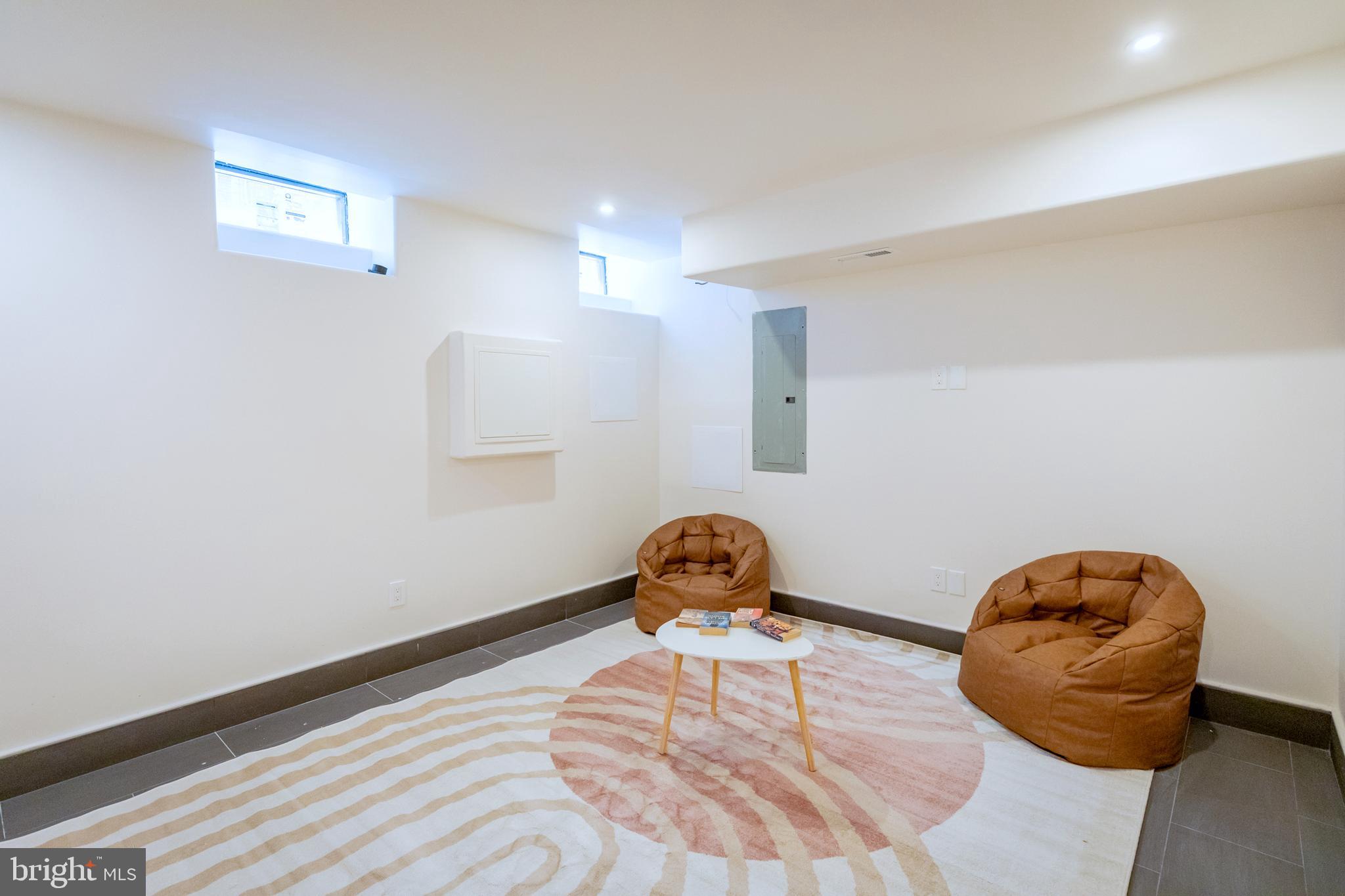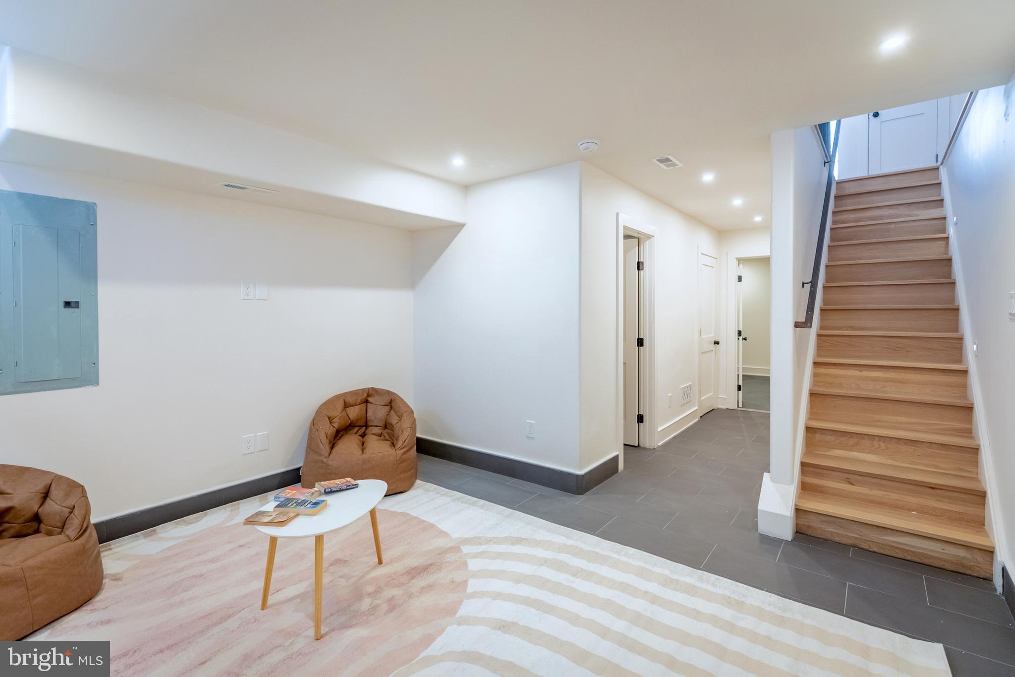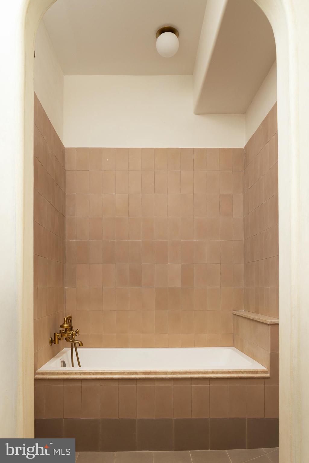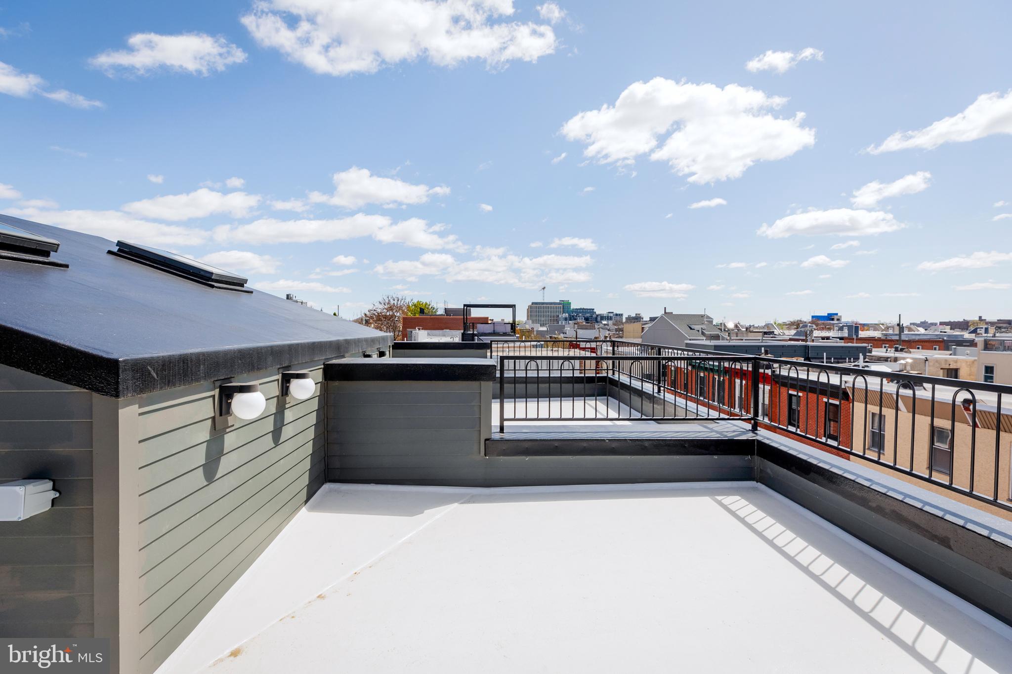 Step through an arched front steel door and rebuilt facade, into a very stylish living level that has a generous amount of space for lounging and dining, as well as a powder room and fabulous kitchen. The kitchen includes a long central island, bar area, thoughtfully designed cabinetry, and high end appliances. Seating along one side of the kitchen island is ideal for casual dining, food prep, and entertaining. In the rear of the first floor, glass doors provide fantastic daylight in the kitchen and lead outside to a private back patio.
