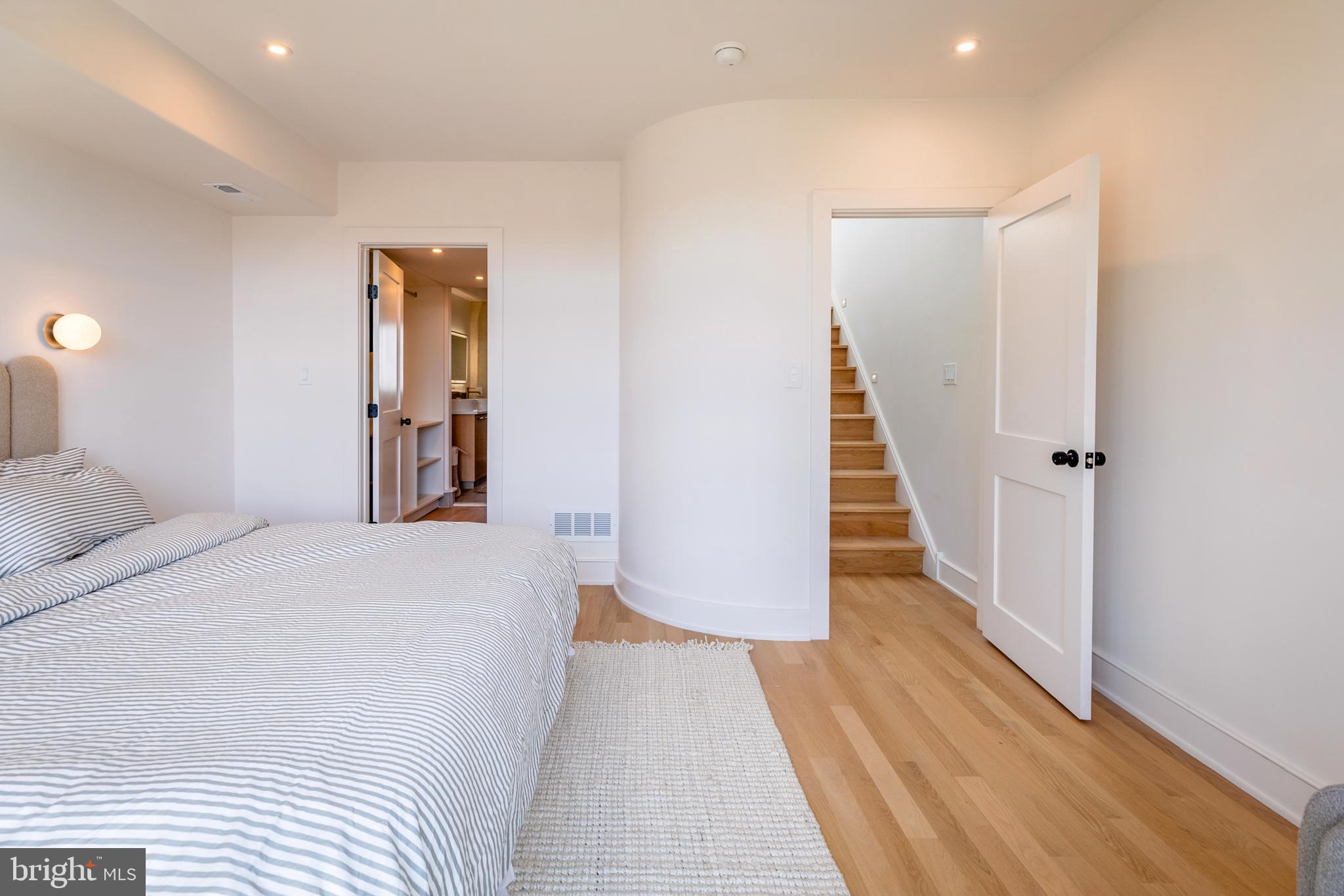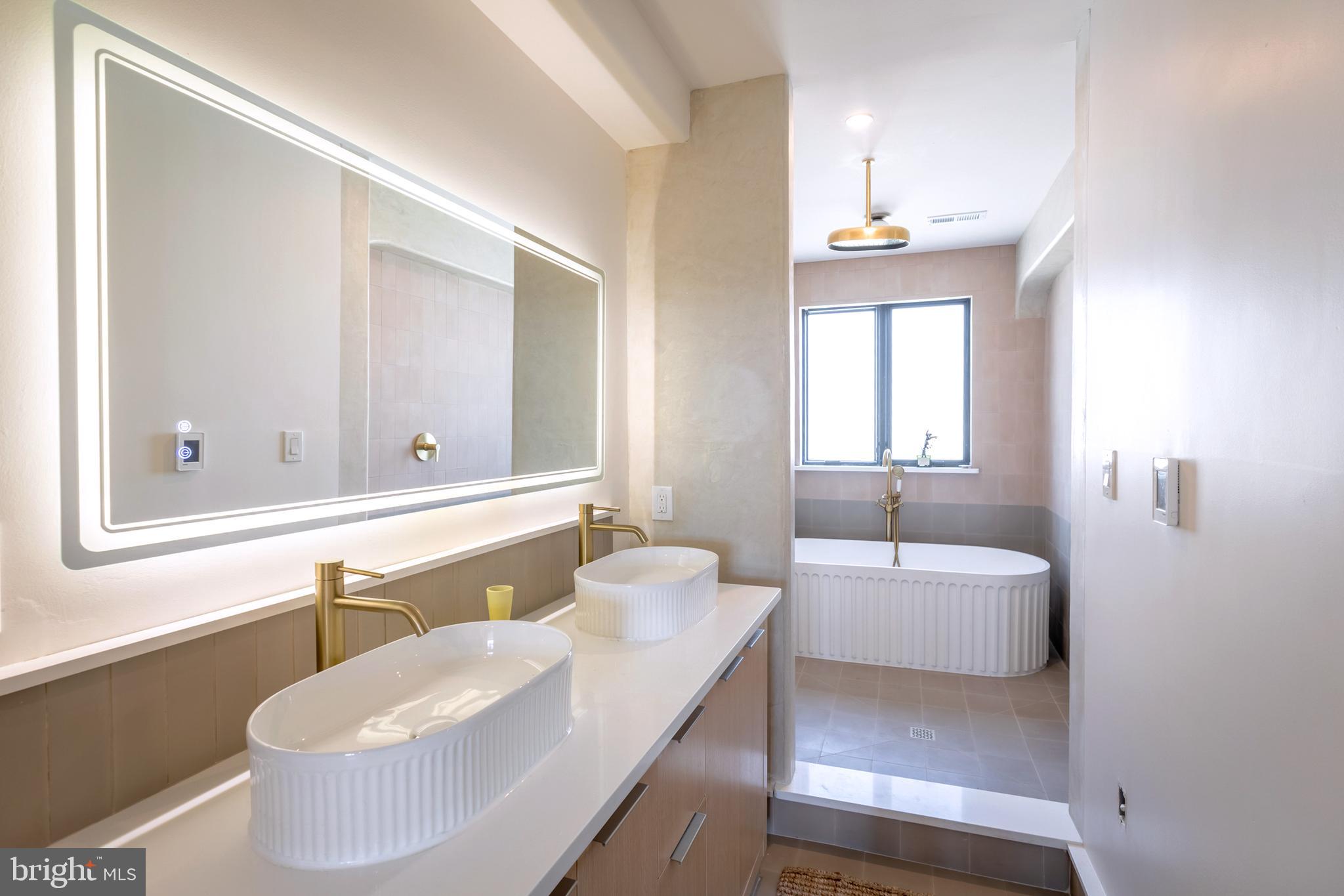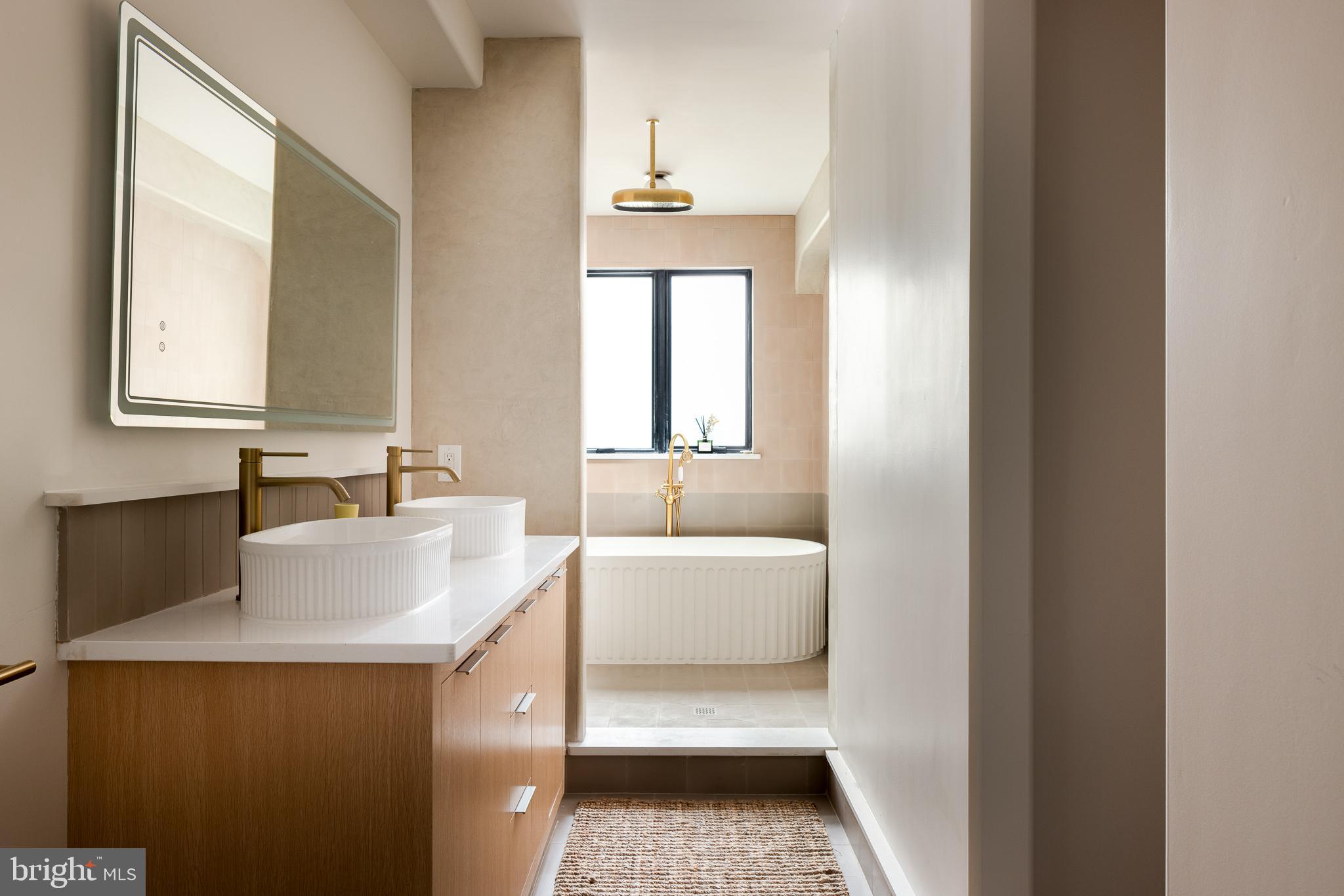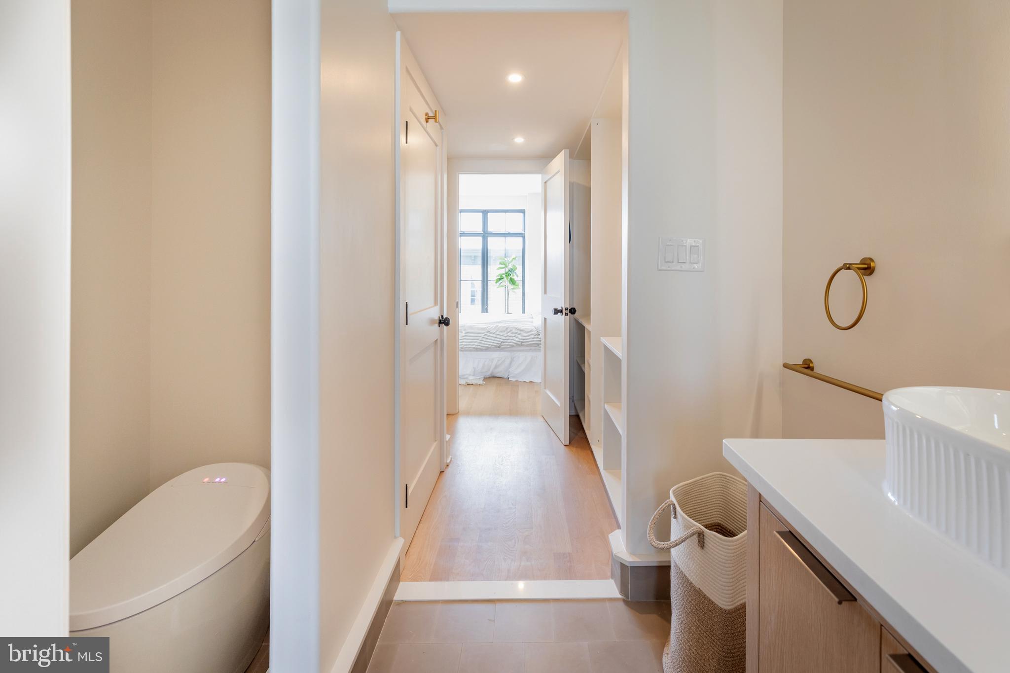 The third floor is dedicated to the primary owner's suite, and features a spacious bedroom, a large walk-in closet, and a remarkable wet room with a double vanity, stall shower, and a soaking tub. An additional room on the 3rd floor offers flexibility for an office or a quiet retreat. With an adjacent closet, this can also serve as a fifth bedroom.