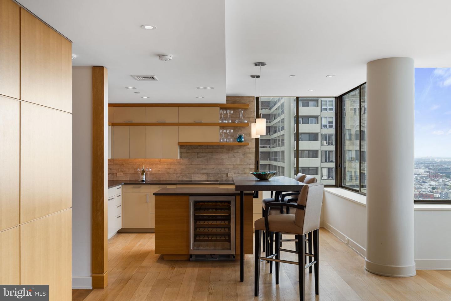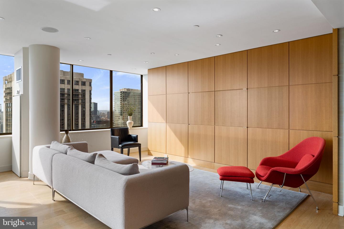 NEW LISTING! Welcome to Residence 2201, an exceptional, one-of-a-kind build by Shay Construction, located in The Rittenhouse Hotel and Condominium! Unmatched attention to detail and elevated finishes of this exquisite two bedroom, 2,5 bath home make it an architectural gem. Designed by Spence and Kass of Kass Associates and Ellen Magen Interior Design, the residence seamlessly combines luxury and comfort, inviting you to experience an unparalleled lifestyle in one of Philadelphia's most desirable addresses. Step inside this 1,639 square-foot residence, and you'll immediately notice the superior craftsmanship and custom millwork. The open layout maximizes space and light, creating a bright and welcoming environment ideal for both relaxation and entertaining. The home is wrapped in oversized windows that capture the most sensational views of the sunset. Unwind in the expansive living area, which flows into the dining room and the state-of-the-art kitchen with tasteful custom cabinetry by Fab Dubrunfaut, sleek countertops, and premium appliances. Retreat to the tranquil primary suite, with a gracious sitting area, a walk-in closet, and a span of windows that highlight magnificent sweeping views of the city skyline. The luxurious en-suite travertine bathroom offers a spa-like escape, complete with a bespoke dual vanity and a large steam shower. Located on the opposite wing of the home is a sizable second bedroom (southern exposure) with its own en-suite bathroom and ample closet space. The 2nd bedroom can easily function as a home office or den. A hall powder room is conveniently positioned for guests. There are Lutron shades integrated throughout including blackout motorized curtains in the primary suite. You'll love having 3 exposures, multiple corners, the split bedroom design and ending each night with a sunset. Enjoy five star amenities at The Rittenhouse, including valet garage parking (additional fee), a chauffeur town car, housekeeping services, 24 hour lobby attendant, concierge, room service, pool, fitness center and luxury spa. Scarpetta, Lacroix restaurant and the Library Bar are also all at your doorstep! Pet friendly