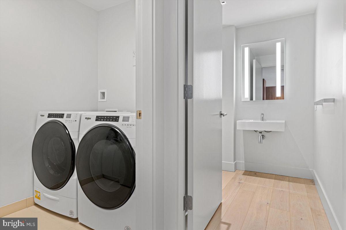 2100 Hamilton is a new, 27-unit luxury condominium building in the heart of the Art Museum Area designed by award-winning architect Cecil Baker to offer the ultimate in privacy. With the Rodin and Barnes Museums as its neighbors, spectacular views of the city skyline and a wealth of private greenspace at its base, the 10-story 2100 Hamilton is ideal for those seeking the finest in luxury living in a sedate park-adjacent city neighborhood. Pull into the garage drop-off station where a valet is available to assist you. The elevator, which uses facial-recognition technology, will take you to your residence and open directly to your apartment, eliminating shared hallways. This 2-bedroom/2.1-bath/1,736 sq ft, with large terrace has exceptional city and garden views. Includes 1 parking space. There is a $350/mo. valet fee. Hardwood floors run throughout the residence, and there are gas fireplaces in the living room and main bedroom. All apartments have expansive balconies with retractable glass doors and are heated from above so that the outdoor space becomes a seamless extension of your indoor space. The state-of-the-art kitchen is outfitted with Quartz countertops, Sub-Zero refrigerator, full-size wine cooler, Wolf oven, induction cooktop, pull-out microwave drawer, Joanne Hudson cabinetry and a separate pantry area. There is a laundry room with full-size washer and dryer. All windows are pre-wired to accommodate power window treatments. The main suite bath features designer finishes along with a radiant-heated floor and oversized glass-walled shower where the glass frosts for privacy at the touch of a button. For buyers accustomed to outdoor space, 2100 Hamilton has the city's largest residential garden and event plaza, designed by renowned landscape architect Sikora Wells Appel, with water and fire features and multiple seating areas to accommodate a group or a private spot just for you. Additional building amenities include an indoor infinity pool, guest suite, boardroom, top-grade fitness center, catering kitchen and amenity lounge, town car and driver, and 24-hour concierge. Schedule a time to tour 2100 Hamilton and see for yourself why this is the crown jewel of the Art Museum Area.