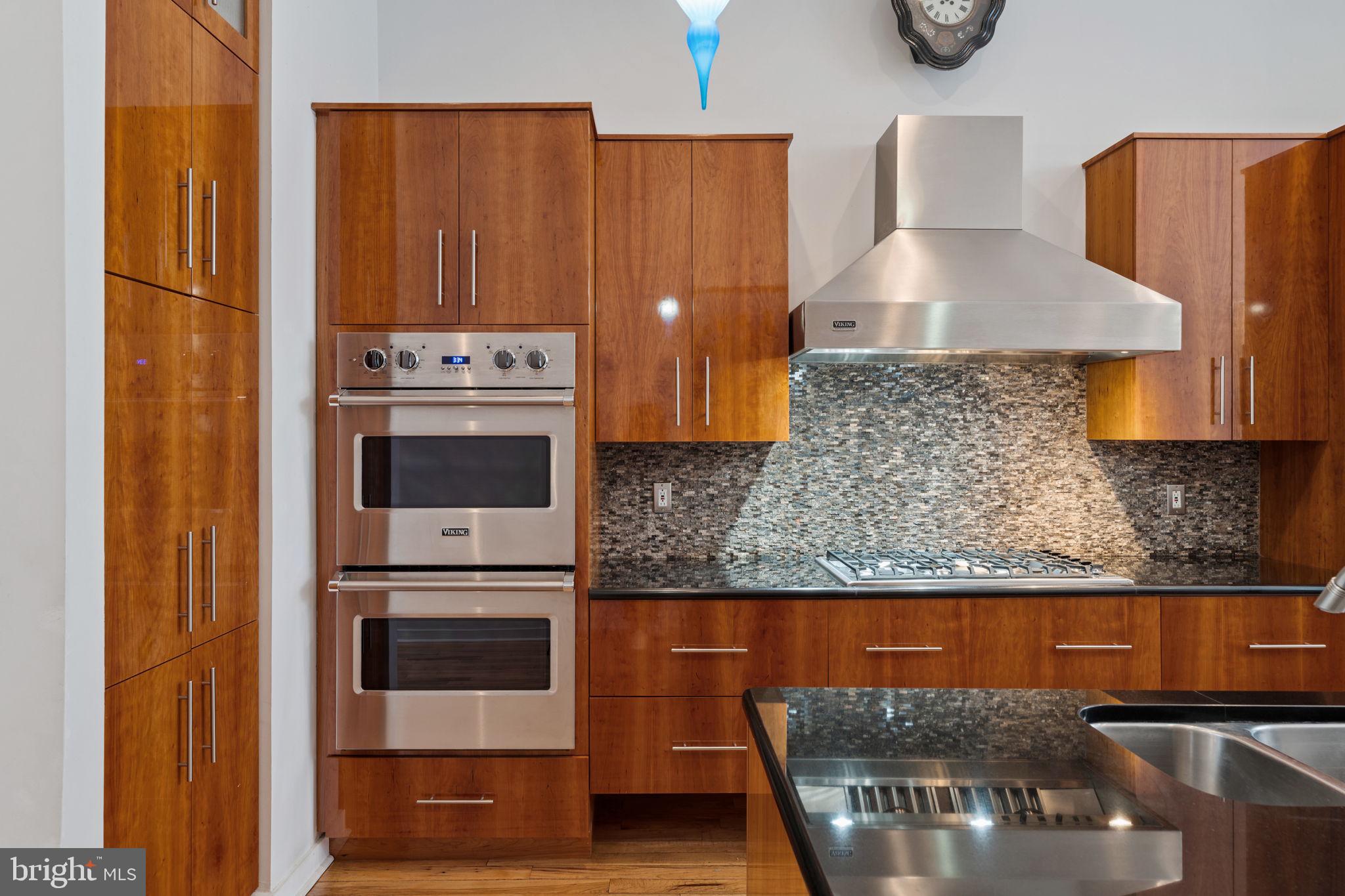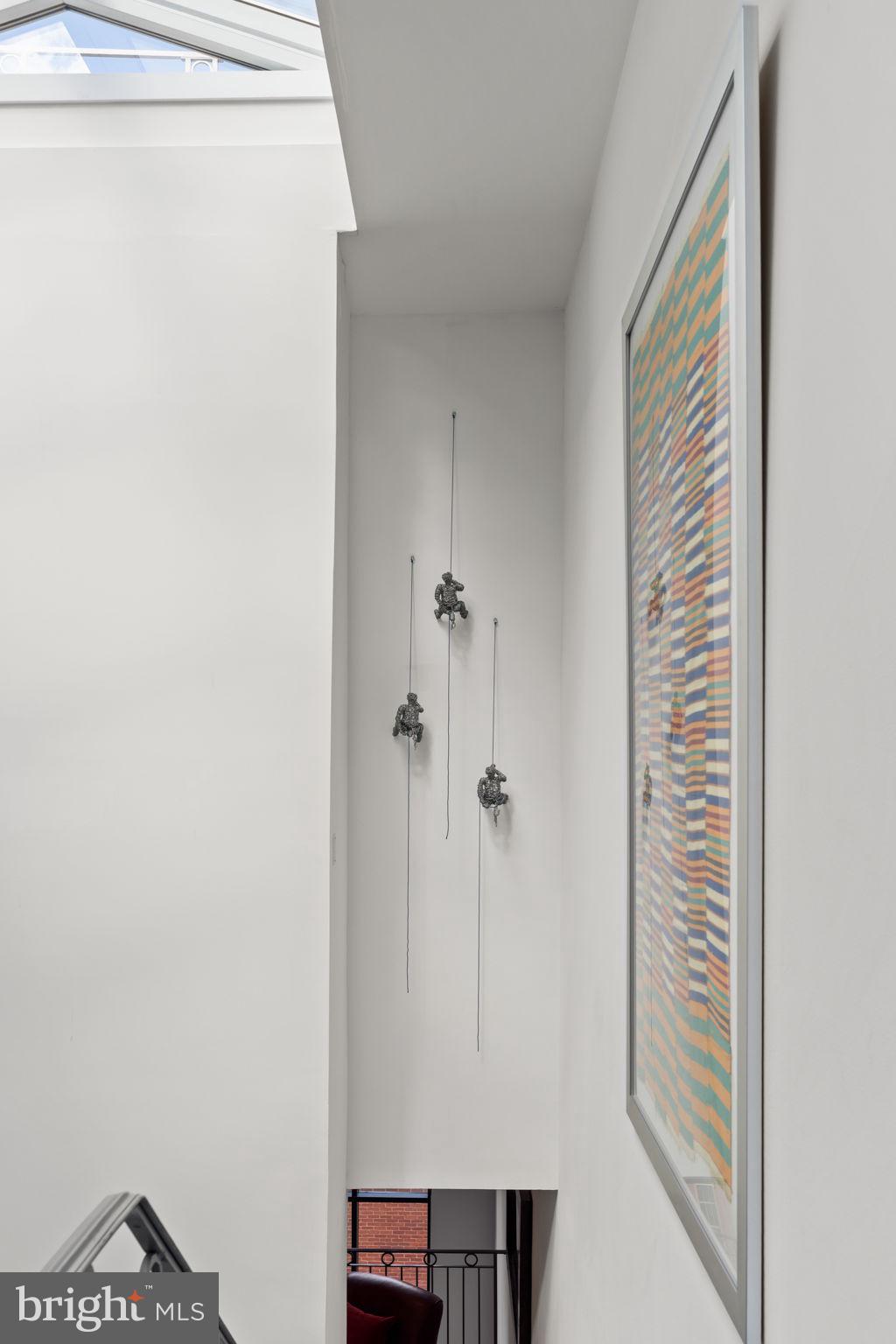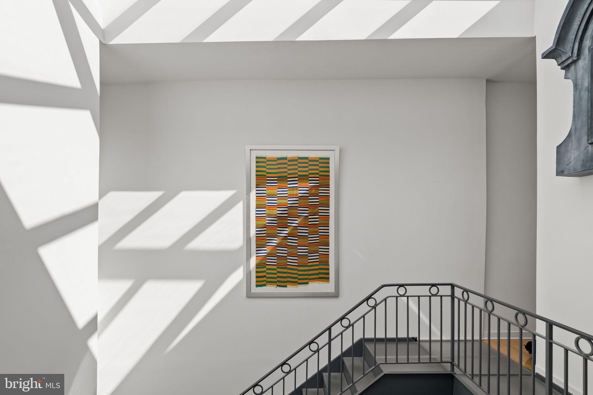 Main living space consists of central atrium soaring 40' to top of 12' skylight. The translucent stairs wrapping around this space lead all the way to the 3rd Floor. Living room on this floor has 22' H window facing the street below. The floors are 3/4" solid wood "Character Hickory". Kitchen/Dining areas are on alternate side of central atrium. Lacquered Cherry cabinetry and Viking appliances throughout. Counter tops and Island are black granite. There is a powder room off of the atrium, and sliding glass doors lead to a small deck off of the dining area where you can grow herbs, cook your dinner on a real charcoal grill, or simply enjoy a glass of wine.