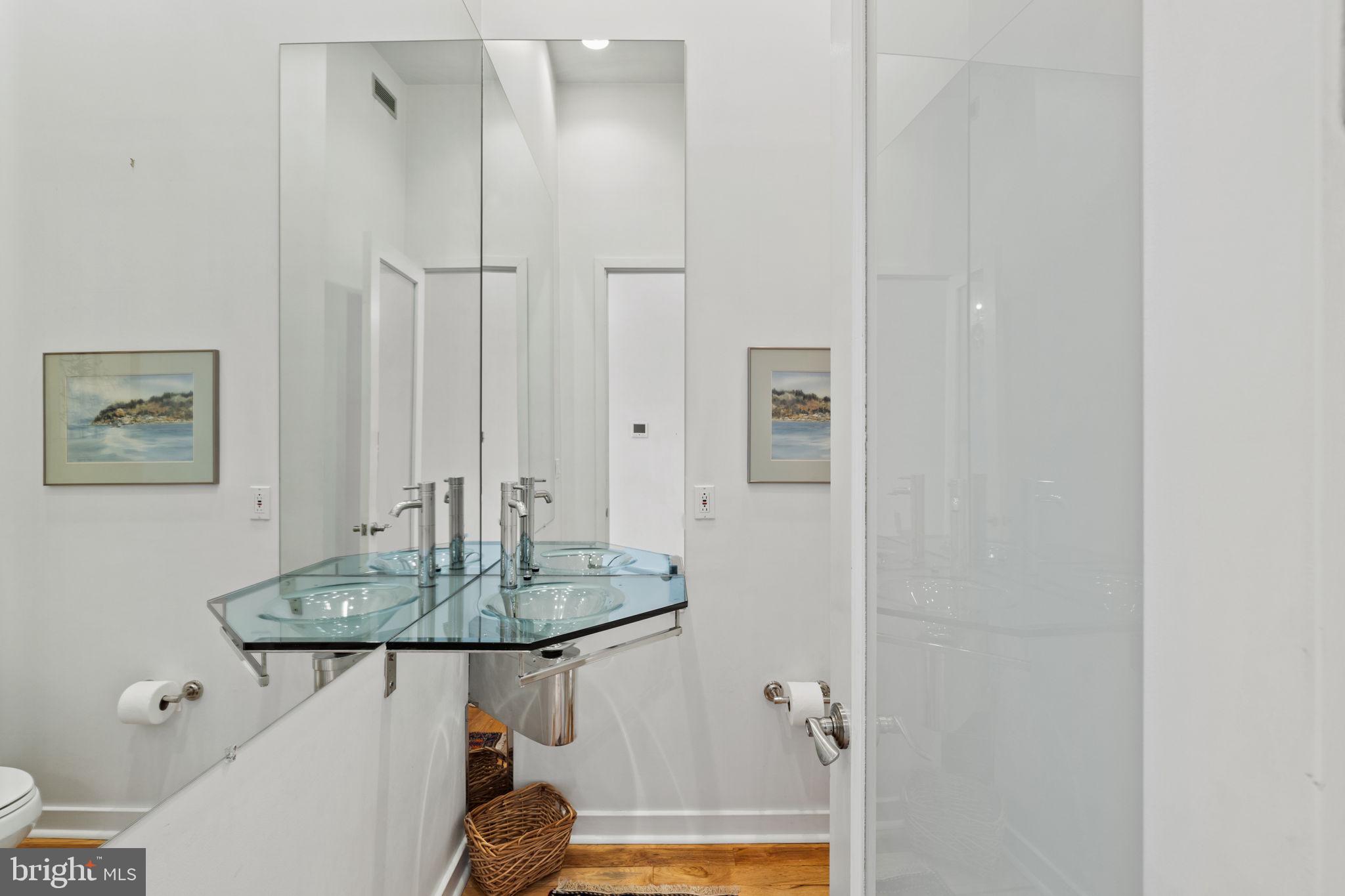 This Glass Curtain Wall Facade, 4 story home, is located on the cobblestone alley behind historic Christ Church and the Arden Theater, both are pillars of the Old City community.