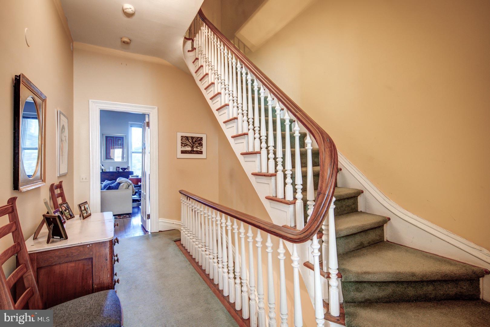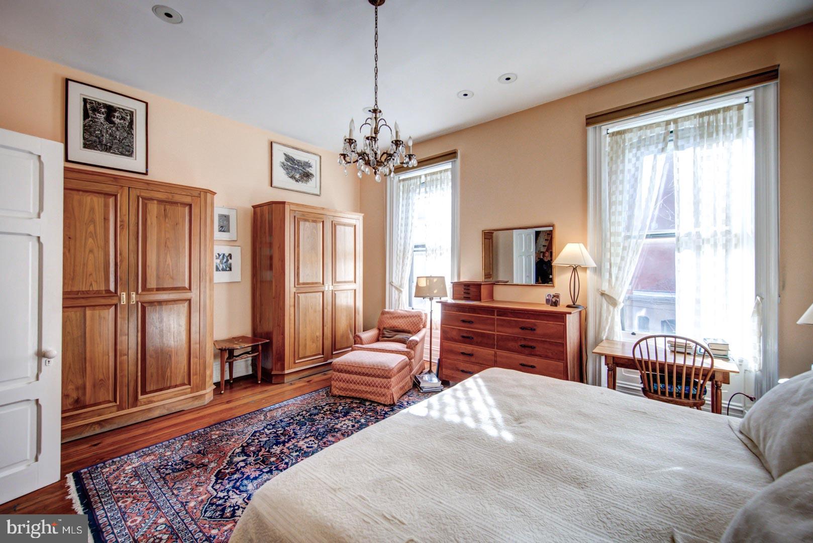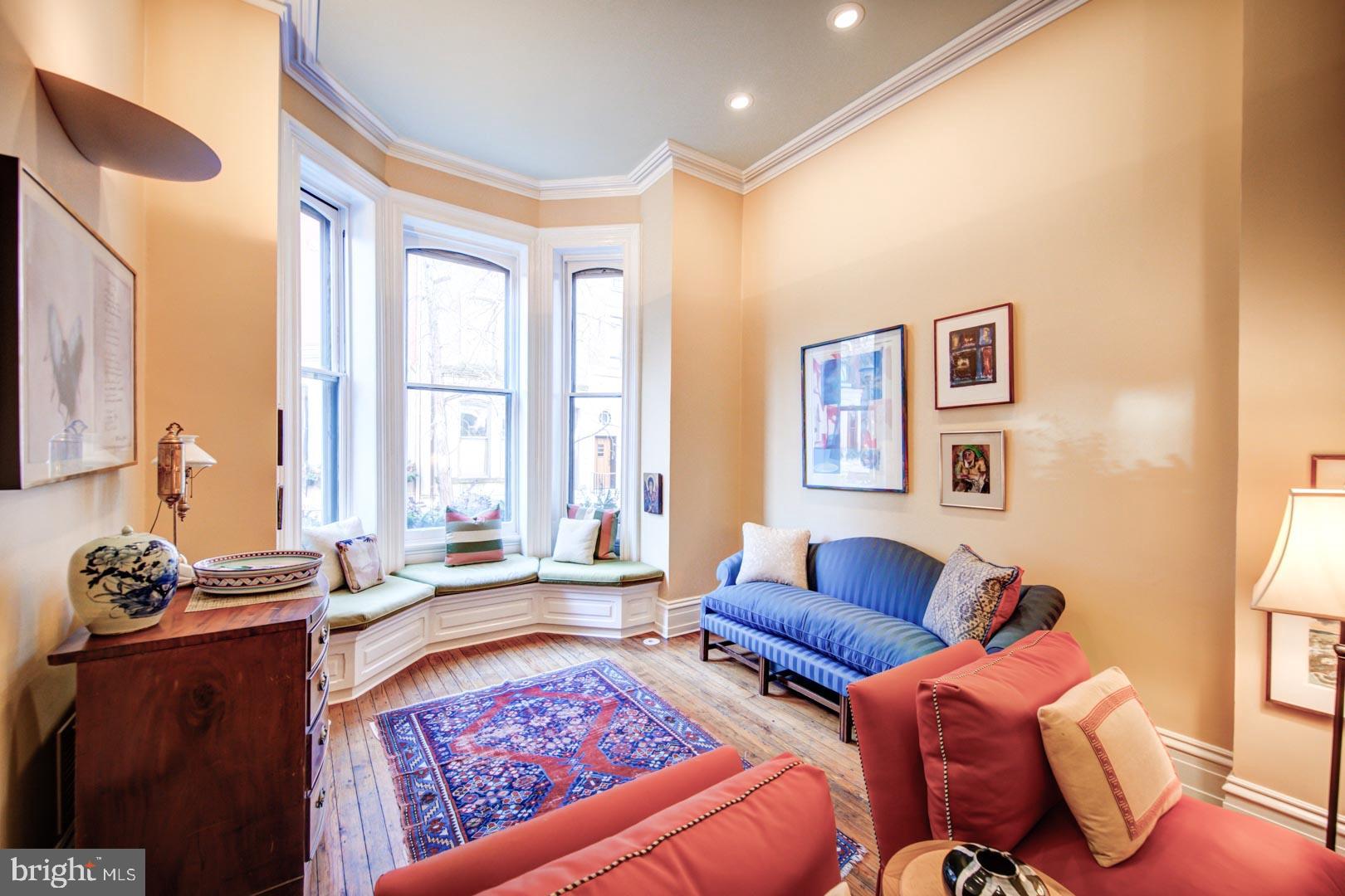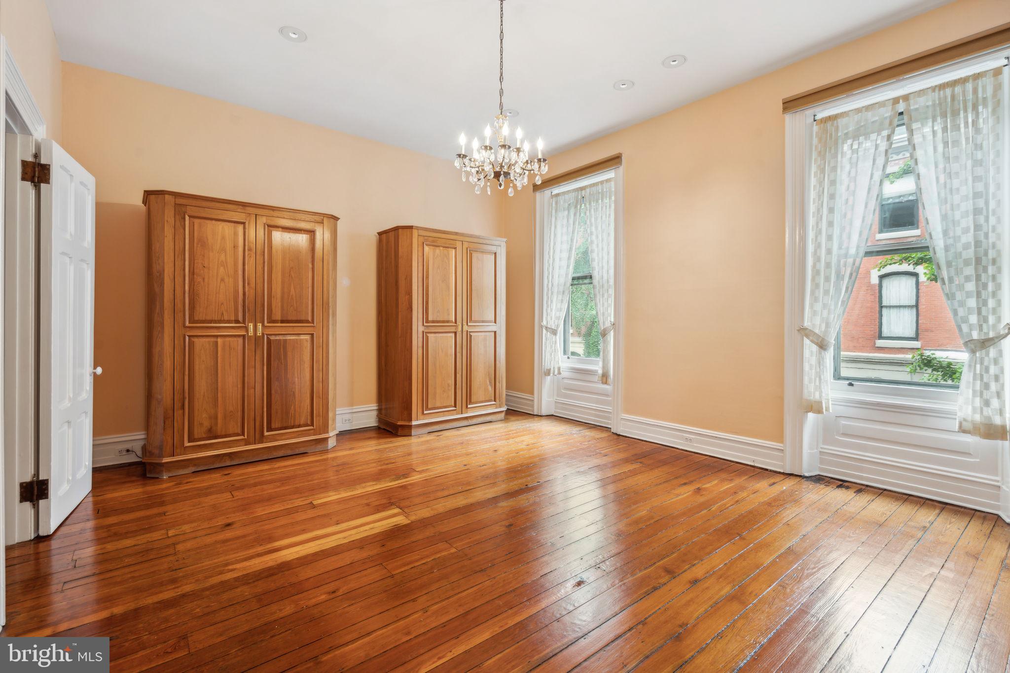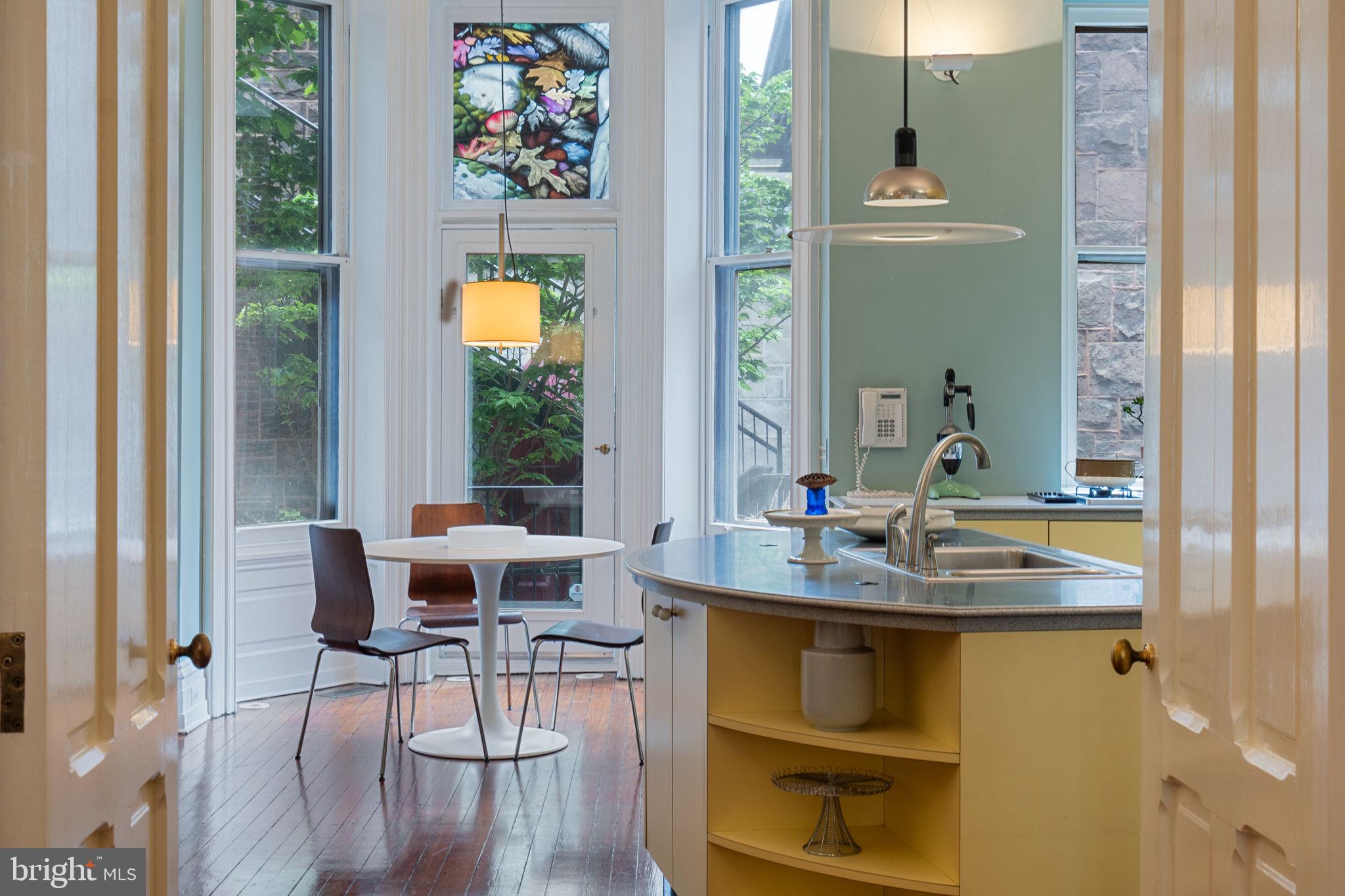 20' wide Quintessential Philadelphia Townhouse on a tree-lined, picturesque block. 5 bedrooms, 4.75 baths on 5 levels. This 1850 home built before domestic electricity is filled with light even on a rainy day. Enter through the vestibule with original tiled floor into a double length living room with soaring 12' ceilings, fluted columns, bay window, wood mantle with green tile insert. Large eat in kitchen with juliet balcony, gas fireplace with distinctive tilework and iron firebox. There is a quarter bath cleverly tucked under the stairs on this level. Upstairs on the second floor is a large library with built-in shelving in the rear and the south facing primary suite in the front of the house. The third floor has two more bedrooms. The rear bedroom has a hall bath and the front bedroom has an en suite bathroom. The fourth floor has two more bedrooms and a jack and jill bath. The english basement is partially finished with a large den and bar, half bath, access to the rear yard and a large storage area in the unfinished section. This home has been very well maintained though some will want to update the kitchen and baths. In addition to all the shopping, theatre and restaurants of Rittenhouse Square the property is 1 block to Fitler Square, 3 blocks to the Schuylkill River Park and Trail. Easy access to 30th Street AMTRAK station, Routes 676, 76 , 95 and the Philadelphia International Airport.