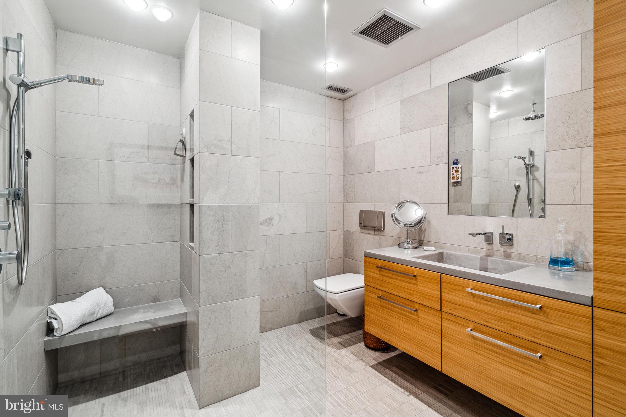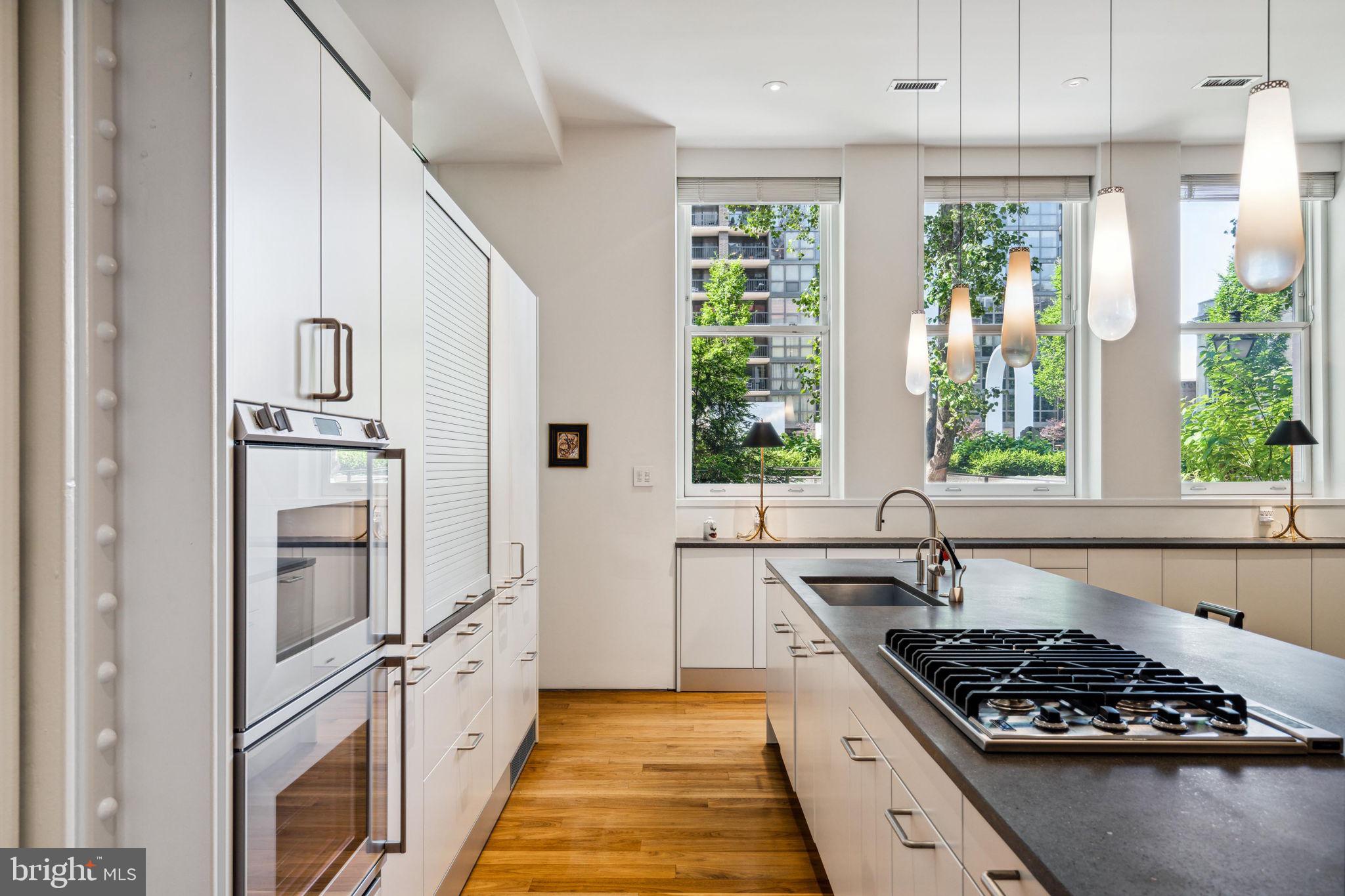 This unit is offered turnkey, fully furnished, (excluding art) and ready to be your modern metropolitan oasis. Designed by architect Stephen Verner, it seamlessly blends contemporary design with high-end natural finishes. With one-floor living, two parking spaces, full-service amenities, and flexible entry options, this residence offers everything you need, with the freedom to evolve with your lifestyle.