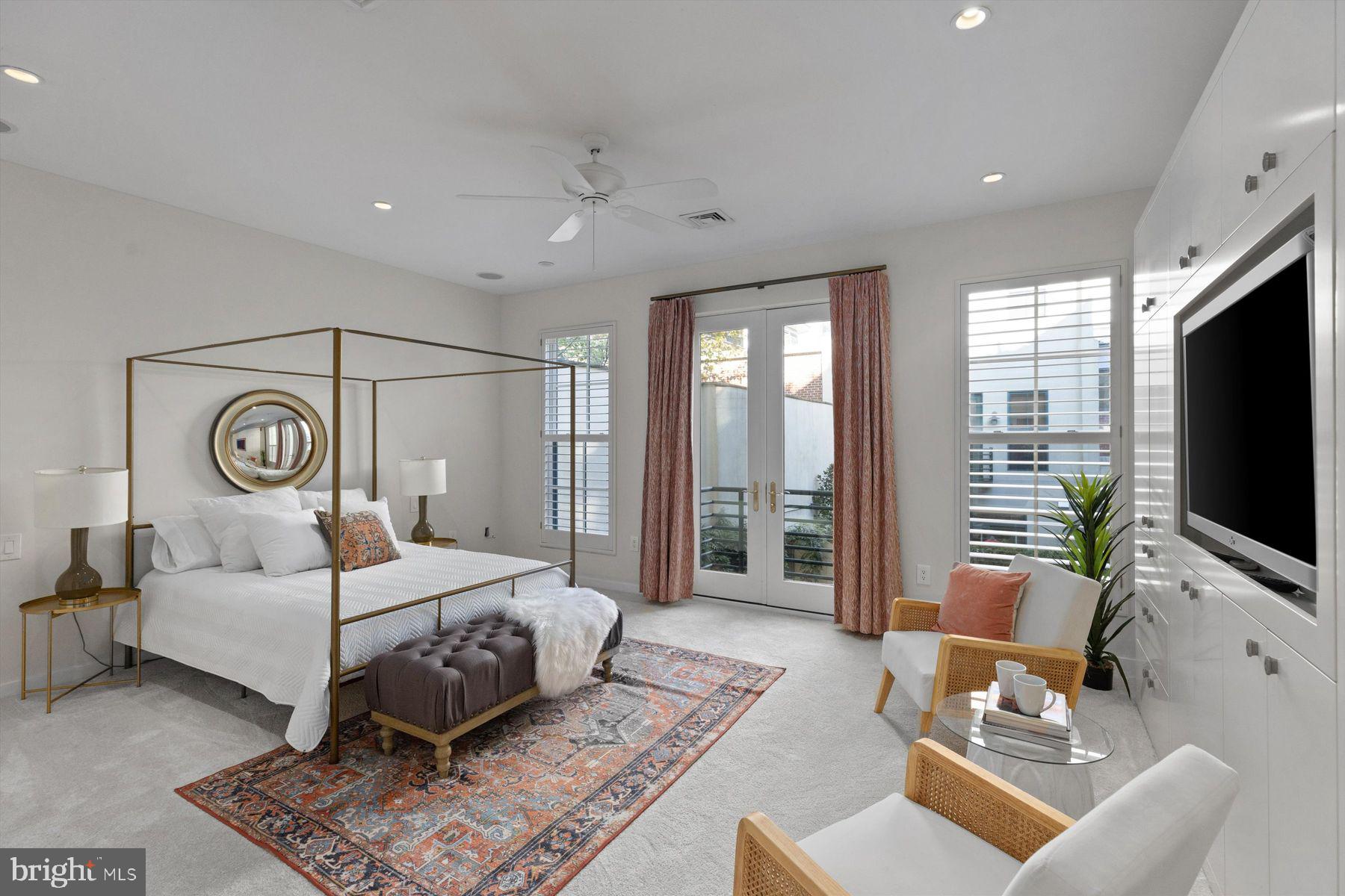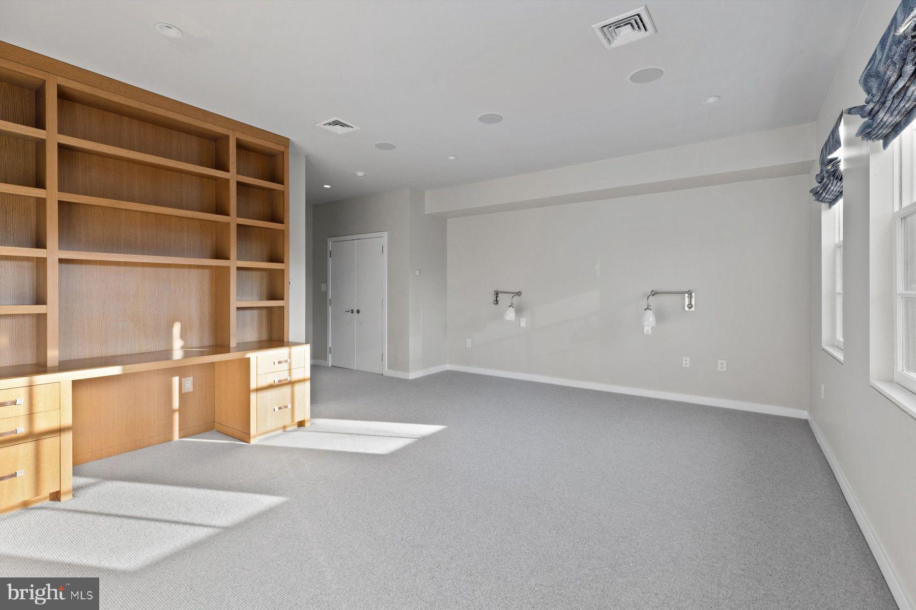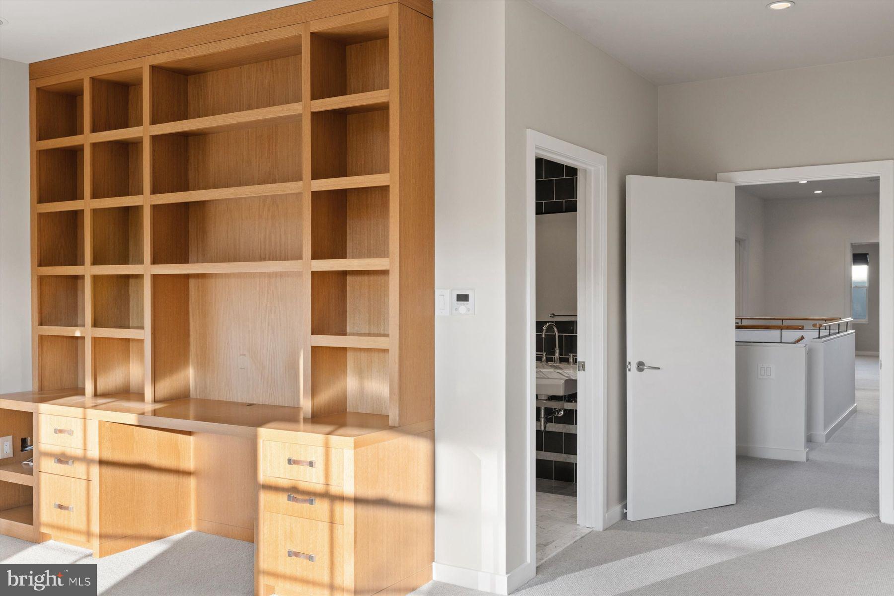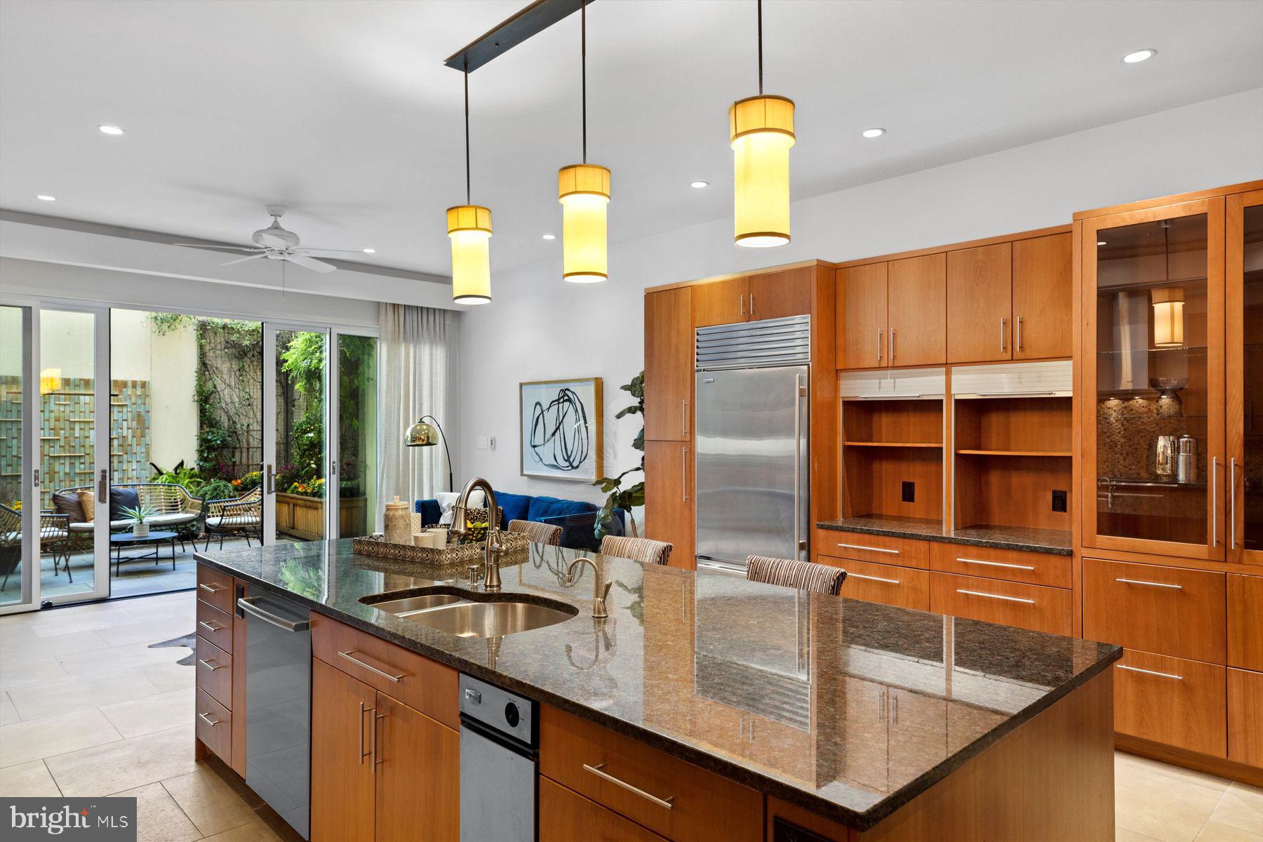 A perfect fit with the streetscapes of Rittenhouse Square, this brick townhouse rises three stories and offers a floor plan and contemporary finishes well suited to how many of us live today -- enjoy a main level with great flow to a private patio garden and note multiple offices for those who work from home. Enjoy the luxury of an attached one-car garage with interior access to a light-filled, expansive floor plan with elevator serving all levels. The grand-scale entry level offers a cook's kitchen with a wealth of storage, big island and five-burner gas cooktop. The kitchen opens to the dining area as well as a casual seating area with fireplace and built-ins. Step outside to a private garden oasis with an exquisite waterfall. A formal living room on the second level is yet another beautifully designed, airy space with treetop views, built-ins and a second fireplace. On this level and separated by a landing with excellent storage is the primary bedroom suite. Overlooking the garden, this is a very restful, light-infused room with a wall of built-ins, multiple closets with organizers, French doors opening to a Juliette balcony and a deluxe bathroom. The bathroom is designed for two - two toilet rooms, two sinks, an oversized seamless glass shower and a Maax soaking tub finish this marble retreat. The third floor, with a landing topped with three skylights, presents two en suite bedrooms, an office and additional storage. As a bonus, the lower level is finished to include a home office lined in library shelving complete with rolling ladder. A wet bar with wine cooler and undercounter refrigerator completes this space. An adjacent full bath suggests this could also be an au pair suite/4th bedroom. In the Greenfield School catchment with access to both Rittenhouse and Fitler Squares, this townhouse is an outstanding choice for the buyer seeking a residence that balances design and quality throughout its 6,400 square feet of living space.